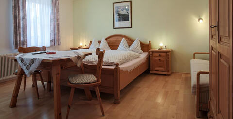 Unser Bauernhof bietet Ihnen modern eingerichtete Gästezimmer mit Dusche/WC, Zentralheizung und Balkon und komfortable, große Ferienwohnungen.. Auch in unserem gemütlichen Aufenthaltsraum mit Sat-TV werden Sie und Ihre Kinder sich wohlfühlen. Unsere Gästezimmer sind unterschiedlich in Größe und Einrichtung. Alle haben Dusche/WC, Zentralheizung und Balkon. Die kleinen und großen Ferienwohnungen für bis zu 6 Personen mit jeweils 3 Schlafzimmern und Dusche/WC sind komfortabel und komplett eingerichtet und 70 bis 100qm groß.