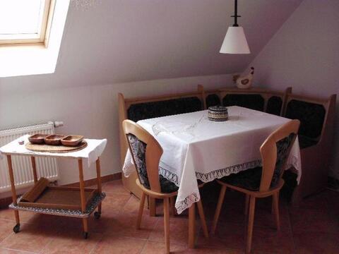 Die Wohnung hat zwei Zimmer - ein Schlafzimmer mit Doppelbett, Nachttischen, Stuhl, Kleiderschrank und hölzernen Verdunkelungsrollos, sowie ein gemütliches Wohnzimmer mit ausziehbarer Couch, Sat-TV, DVD-Player, Karten- und Infomaterial, Zeitschriften und Büchern sowie Spielen für Regentage. Die vollausgestattete Küche (Kühlschrank, Herd, Spüle, Wasserkocher, Kaffeemaschine, Toaster, Mikrowelle) mit Sitzecke bietet Gelegenheit zum Selbstkochen, falls Sie einmal nicht auswärts essen möchten. Direkt an der Küche befindet sich ein Balkon, auf dem man im Sommer wunderbar Landschaft und Sonne genießen kann. Unser komfortables Badezimmer verfügt über Badewanne, Dusche, WC, Waschbecken und Spiegel. Die Ausstattung wird komplettiert durch Handtücher, Fön sowie einen Bademantel und Handwaschmittel. Besonders schätzen unsere Gäste in der kühleren Jahreszeit die Fußbodentemperierung.