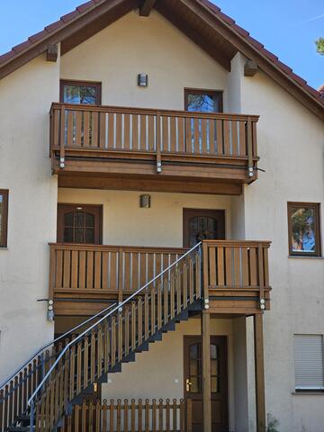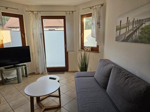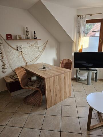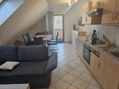 Die modern eingerichteten Wohnungen bietet Platz für 3 Personen. Sie sind ausgestattet mit einem großen Flur mit Schrank, einem bzw. zwei Schlafzimmer (Doppelbett) und einem Duschbad. Die offene Küche ist voll ausgestattet. Im Wohnzimmer befinden sich eine Schlafcouch, eine Essecke für max.4 Personen, ein MP3-Radio und einen TV-Flachbildschirm. Der anliegende Balkon ist möbeliert. Aufgrund einer Fußbodenheizung ist die Ferienwohnung ganzjährig bewohnbar. Zur Wohnung gehört ein Pkw-Stellplatz direkt am Haus.