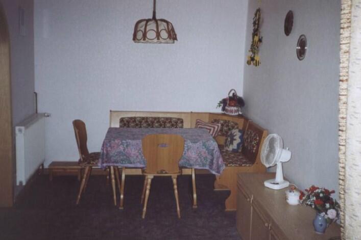 Das Wohnzimmer ist mit Fernseher und Radio ausgestattet. Von hier aus gelangen Sie auf den großen Balkon und haben einen Blick in den Garten und auf den Waldstein. Die Küche ist mit allem ausgestattet, was benötigt wird. Sollte trotzdem etwas fehlen, wenden Sie sich an uns. In der Eßecke läßt sich auch mal ein während Ihres Urlaubs anfallendes Fest feiern Das Schlafzimmer hat ein Doppelbett und zusätzlich ein Kinderbett für unsere kleinsten Gäste. Selbstverständlich steht Ihnen hier ein großer Schrank für Ihre Kleidung zur verfügung. Im Kinderzimmer stehen zwei Betten. Ein Bett ist breiter, wodurch sich dieses Zimmer auch jeder Zeit als zweites Schlafzimmer einsetzen läßt. Auch von diesem Zimmer kommen Sie auf den großen Balkon mit Blich in den Garten. Bildname Sollten Sie einmal unerwartet Besuch bekommen der über Nacht bleiben will, dann reden Sie mit uns. Für solche Notfälle haben wir noch ein Beilstellbett parrat.