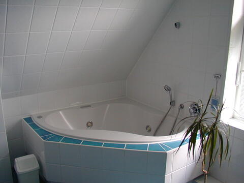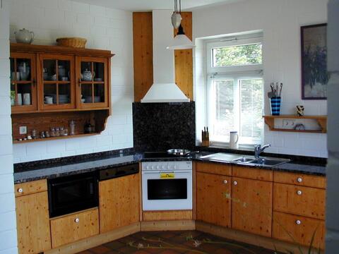 Die Küche ist ausgestattet mit Kühlschrank, Geschirrspülmaschine, E-Herd mit Ceranfeld und Backofen, dazu Mikrowelle mit Grill, Toaster und Kaffeemaschinen (u.a. JURA Impressa Z-Serie), etc. Kochbücher für gesunde Ernährung und Fitness-Anleitungsbücher sind ebenfalls in den Häusern vorhanden. Eine Waschmaschine, Wäschetrockner, zweiter Kühlschrank und Gefrierschrank stehen im Hauswirtschaftsraum zur Verfügung. Zerstreuung und Kommunikation ermöglichen vier Farb-TV mit digitaler SAT-Antenne und teilw. DVD / Blu-ray Player, alle HD-Fernsehgeräte haben USB-Anschlüsse, so dass sie auch als USB-Videorecorder genutz werden können (alle TV´s zwischen 22 und 40 Zoll aus der Grundig - Serie), Stereoanlage mit CD- Player; Bose SoundDock für iPhone und iPod, Philips DC291 für iPhone, iPod und iPad; internet-fähiger PC (eigener UMTS-Stick erforderlich) mit TV und Spielekonsolen - sowie Flat-rate-Telefon ins deutsche Festnetz. Die bis zu acht Gäste eines Hauses können sich auf vier Schlafräume verteilen. Es gibt je Haus ein Bad mit Doppelwaschtisch, Bidet, separater Dusche mit Whirlpool sowie ein Bad mit Sauna und Dusche; so dass insgesamt maximal 8 Personen pro Haus einen ruhigen und erholsamen Urlaub hier verbringen können (bei zeitgleicher Anmietung beider Ferienhäuser sogar maximal 16 Personen in unmittelbarer Nähe zu einander) und die Kinder und Erwachsene können sich daurüber hinaus in den Spiellandschaften des Gartens austoben!