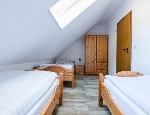 Das Landhaus ist folgendermaßen aufgeteilt: Haupthaus: ca. 110 qm Wohnfläche Erdgeschoss: Diele und Eingang zum Wellnessbreich mit Sauna (Saunatücher werden nicht gestellt), Solarium, Gäste-WC und Fitnessraum im 1. Stockwerk großes Wohnzimmer mit Kachelofen und Balkon, Komfort-Küche und Esstisch bis 11 Personen im 2. Stockwerk Badezimmer mit Badewanne, Dusche, WC, 3 Schlafzimmern (3/2/1 Betten und Zustellbett möglich). Große Terrasse mit Grillkamin In direkter Nähe - ca. 15,00 m - das Nebenhaus (60 qm) mit großer Terrasse und Grillkamin, Wohnzimmer mit Kaminofen - 2 Schlafzimmer (2/3 Betten) - Komfortküche, Dusche mit WC. Beide Häuser bieten einen weiten Blick über Wiesen und den angrenzenden Wald. In den gepflegten Anlagen finden unsere Gä#ste ein Kneipp-Tretbecken, Spielplätze, Kleintiere, Fahrräder, Trampolin, Spielhaus mit Kicker u.v.m.
