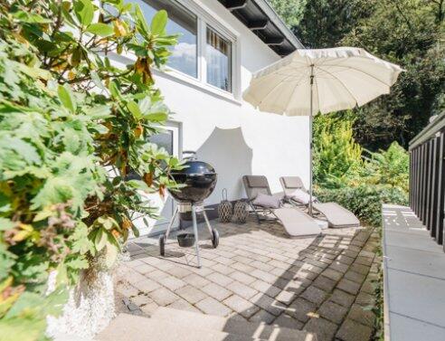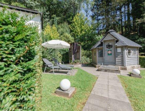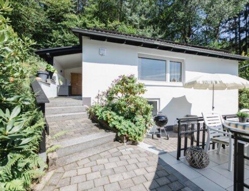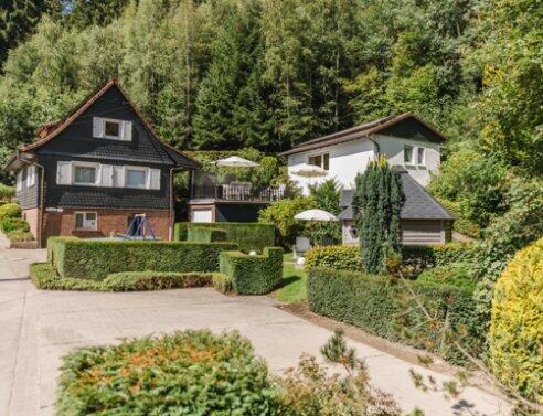Auf einem ca.4000 m² großen Grundstück mit einem kleinen Bach liegt das komfortable und gemütlich eingerichtete Ferienhaus in ruhiger Südhanglage, in gepflegten Anlagen direkt am Wald, mit herrlichem Blick über Tal, Wälder und Wiesen (keine Durchgang