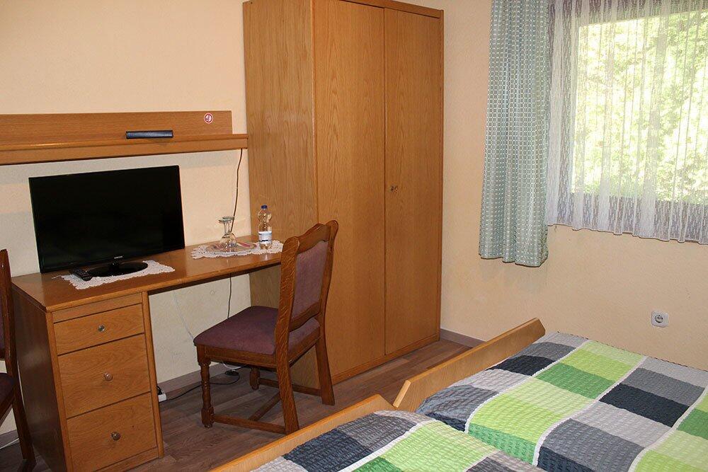 Unsere Pension verfügt über 5 Zimmer. Davon sind zwei Doppelzimmer und drei Zweibettzimmer, die auch als Einzelzimmer genutzt werden können. Alle Zimmer haben ein eigenes Bad mit Dusche / WC, Sat TV und freies WLAN. Lassen Sie sich morgens mit unserem wechselndem Frühstücksangebot verwöhnen. Mit unseren Appartements und Ferienwohnungen haben Sie größt möglichen Freiraum in unserem Haus. Standardmäßig finden sich zwei Betten in den Appartements. Es ist aber ausreichend Platz für eine Aufbettung vorhanden, sodass bis zu 4 Personen gut untergebracht werden können. Die Küche der Appartements ist ausgestattet mit Herd, Mikrowelle und Kaffeemaschine, sodass Sie sich in unserem Haus selbst versorgen können.