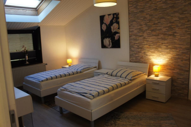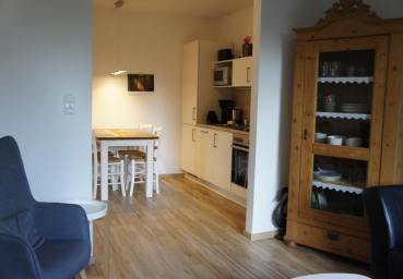 55 qm für 2-4 Personen, Wohnzimmer, Einbauküche, Essplatz, 2 Schlafzimmer, Dusche/WC.