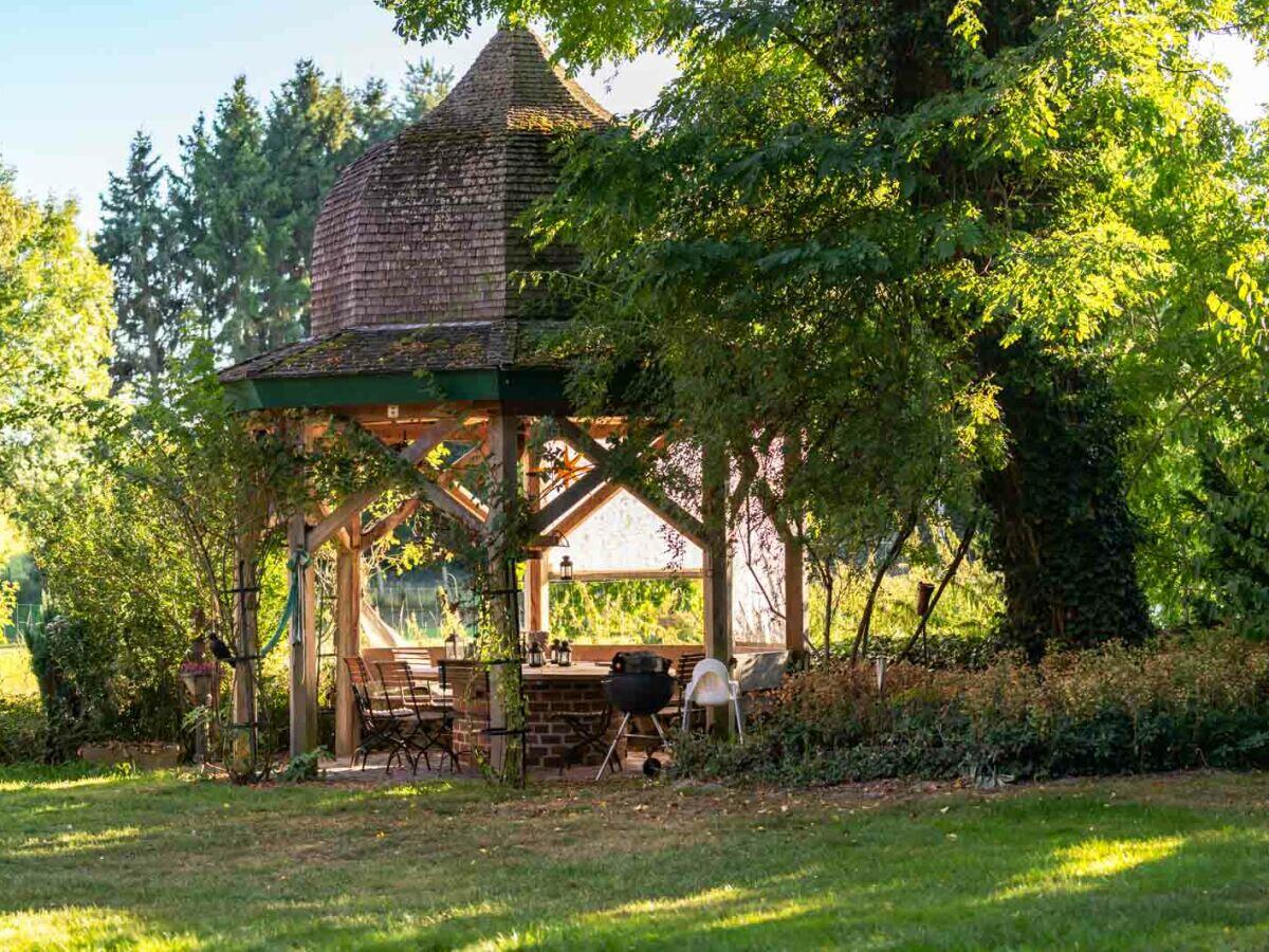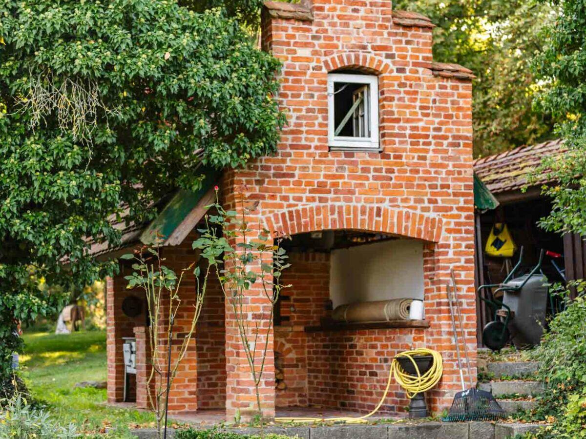 Der Garten der Ferienwohnung liegt hinter dem Haus und ist ca. 450 qm groß. Er bietet zahlreiche Möglichkeiten zur Freizeitgestaltung. Kinder werden den Sandkasten (vor dem Haus) und die Schaukel lieben, während Erwachsene den Grill bzw. den Feuerplatz (bei geeignetem Wetter) nutzen können, um köstliche Mahlzeiten im Freien zuzubereiten.