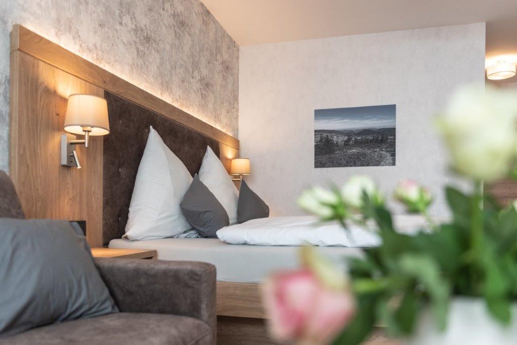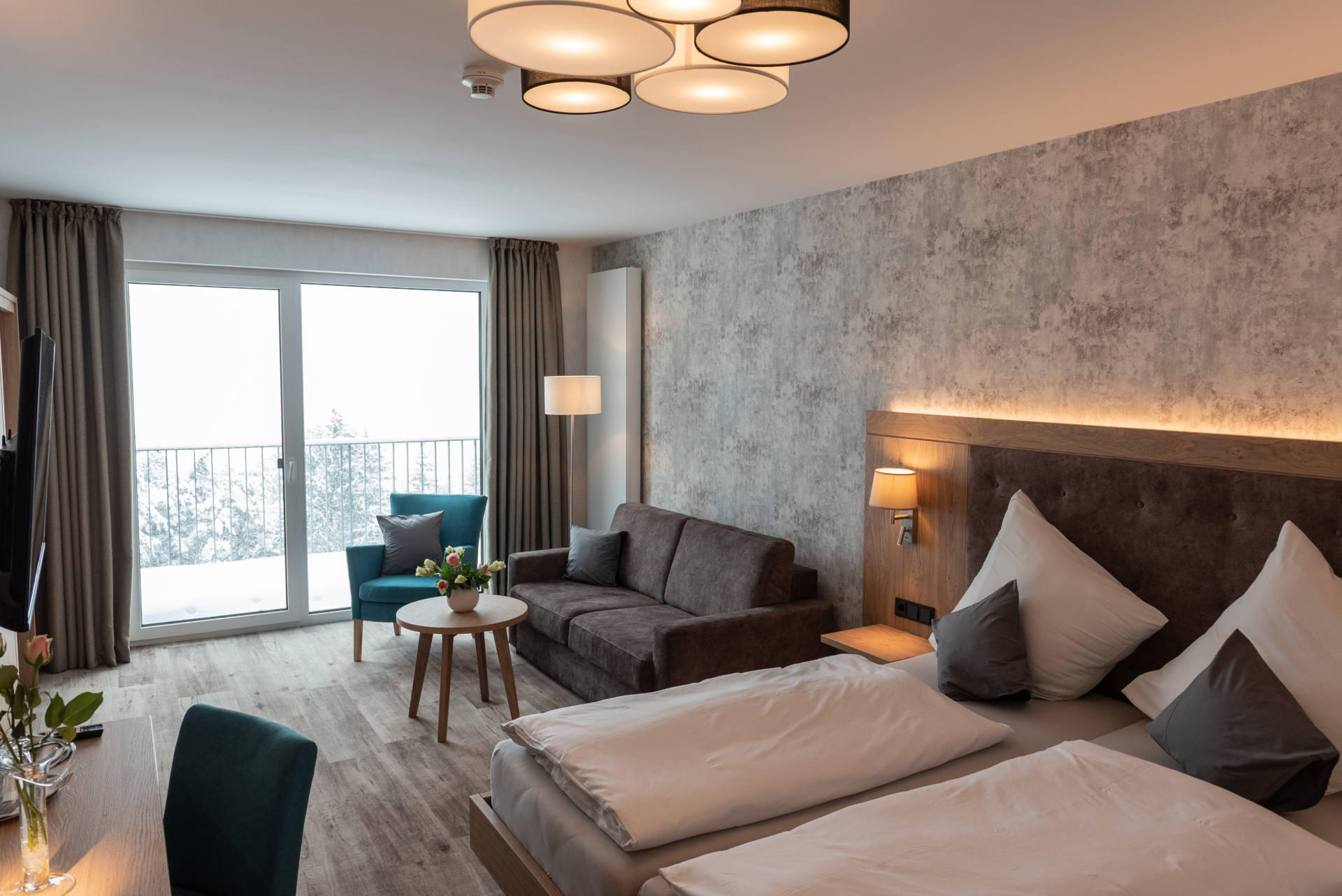 Einzelzimmer In unseren gemütlich eingerichteten Einzelzimmern, mit Balkon fühlen Sie sich wie zu Hause, da sind Wohlbefinden und Entspannung garantiert. Jedes der Zimmer verfügt über kostenloses WLAN sowie einer Sitzecke und einem Schreibtisch. Lassen Sie sich von unserem Personal mal so richtig verwöhnen. Unser Junior Doppelzimmer können Sie auch als Einzelzimmer buchen! Appartement Besonders für Familien geeignet ist das mit hellen Farbtönen arrangierte Appartement. Es bietet Platz für bis zu 5 Personen und verfügt über zwei getrennte Räume, die in Schlaf- und Wohnbereich aufgeteilt sind. Auf dem Balkon oder der Terrasse können Sie einfach mal die Seele baumeln lassen und den Alltagsstress hinter sich lassen, während Sie den herrlichen Blick über Willingen genießen. Luxus-Suite: Traumhaft entspannen Sie suchen Luxus und Entspannung? Dann ist unsere Luxus- Suite genau das richtige für Sie. Sie verfügt über ein supermodernes Bad mit Duschtempel und Infrarot-Kabine. Schöne Träume genießen Sie im Schramm- Himmelbett und die freistehende Whirlpool-Badewanne läd zum entspannen ein. Freuen Sie sich auf unvergessliche Stunden in unserer Entspannungs-Suite. Komfort-Doppelzimmer Unsere gemütlichen Komfort-Doppelzimmer lassen keine Wünsche offen. Alle Komfort-Doppelzimmer sind mit einem Schreibtisch, einer gemütlichen Sitzecke sowie einem Balkon ausgestattet. Zusätzlich sind alle Zimmer mit WLAN ausgestattet, sodass Sie uneingeschränkt surfen können. Genießen Sie Ihren Urlaub in komfortablem Ambiente und lassen Sie sich von unserem Personal so richtig verwöhnen