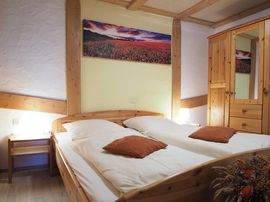 2-Zimmer-Wohnung mit Wohn-Schlafraum (Schlafcouch zum Ausziehen), große Eckbank, neue Küchenzeile mit Spülmaschine, 1 Kinderzimmer mit 2 Einzelbetten, Dusche/WC mit Südbalkon und Blick auf die Berge als auch der Zugspitze, ca. 50 qm, 1. Stock, maximal 5 Personen (2 Erwachsene und 3 Kinder). Liegesessel oder Kinderbett für das dritte Kind vorhanden.