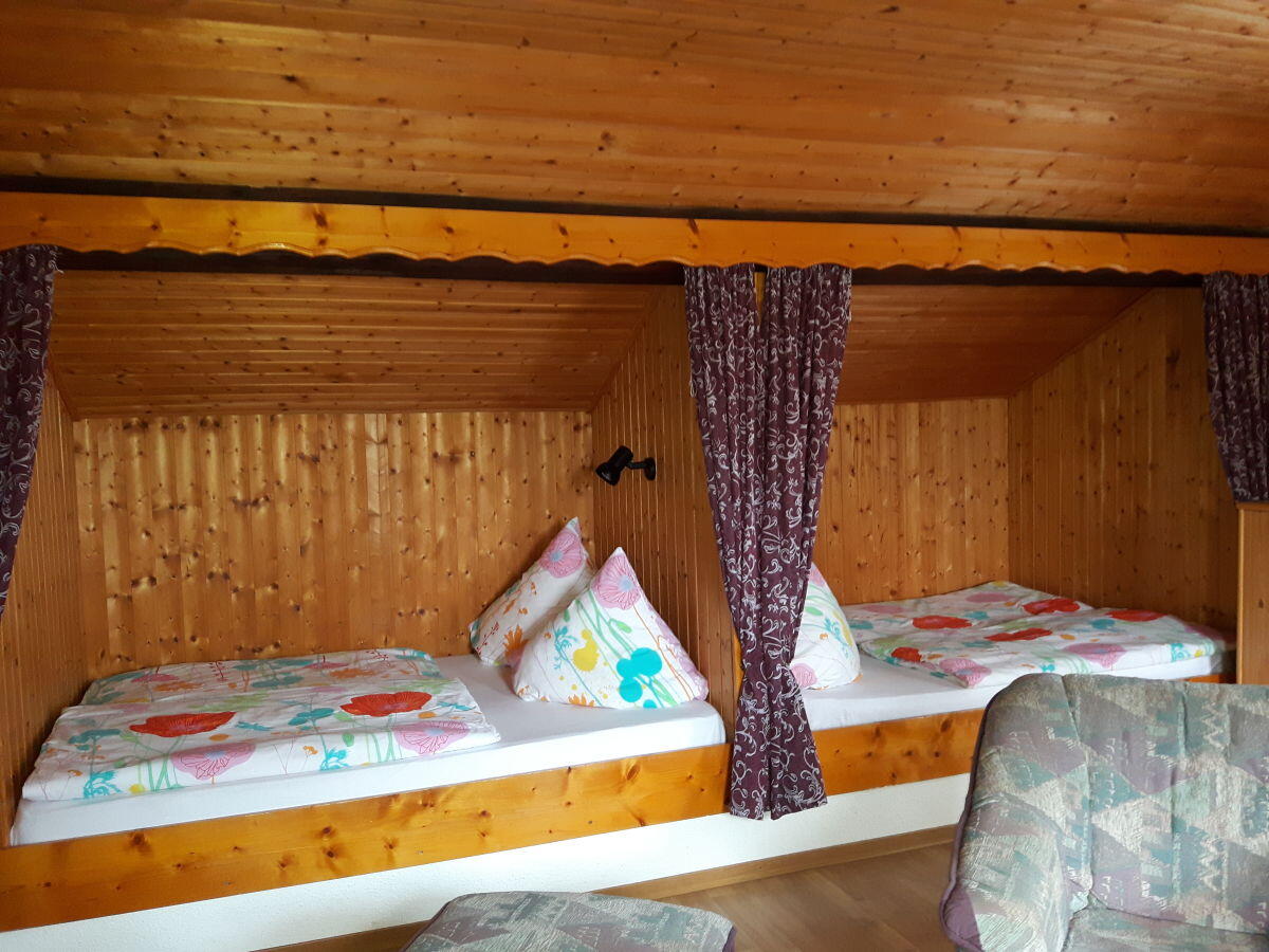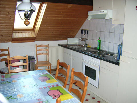 Im Wohnraum integriert befinden sich zwei Butzenbetten (echt ostfriesische Schlafkultur) mit je zwei Schlafplätzen sowie einem separaten Schlafraum. Ferner ist eine komplette Einbauküche vorhanden. Das Badezimmer ist mit Dusche, WC sowie Waschbecken ausgestattet.