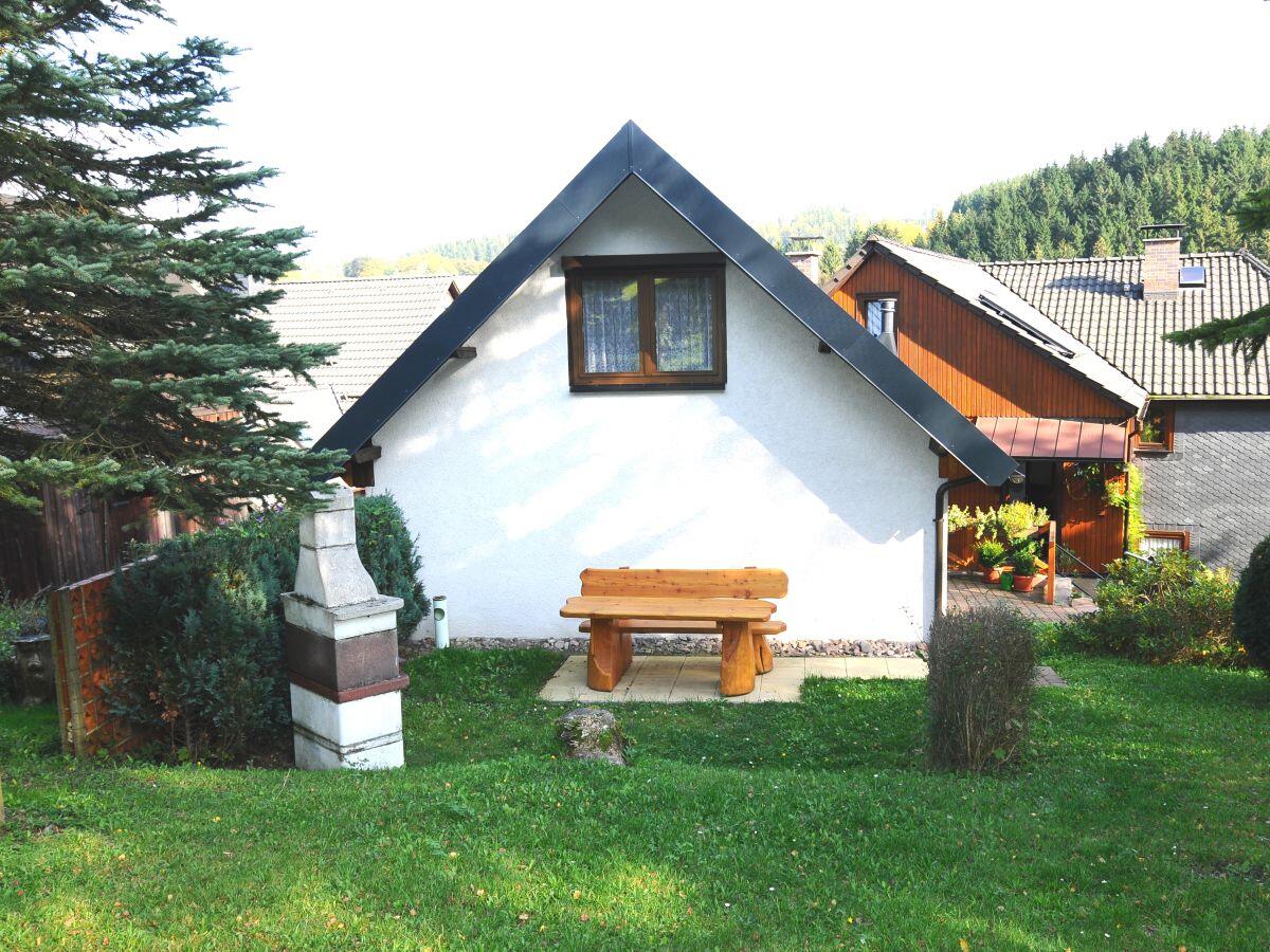 Am Haus befindet sich ein großzügiges Gartengrundstück mit einem Grillplatz und Sitzgelegenheiten. Durch die Hanglage des Grundstückes, haben Sie vom oberen Bereich des Gartens eine fantastische Aussicht über Stützerbach.