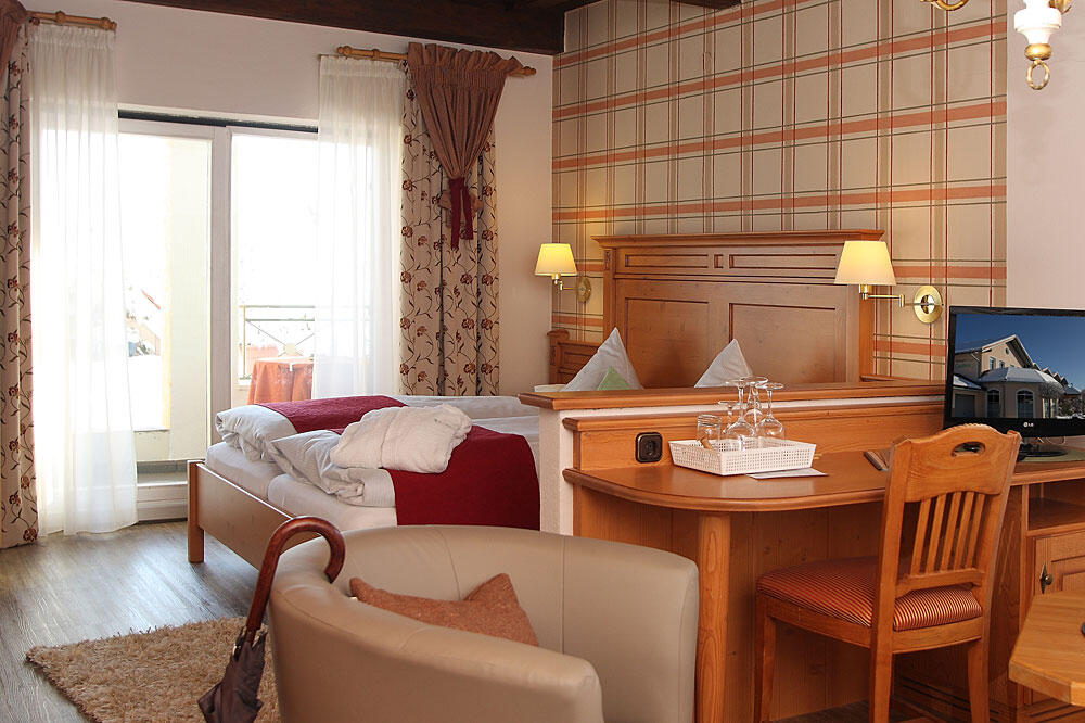 Komfortable Zimmer im Landhotel Bayerischer Wald Es stehen Ihnen 20 Komfort-Hotelzimmer (EZ, DZ, Dreibett-Zimmer) mit Balkon/Terasse oder Wohnteil, SAT-TV, Radio, Telefon, Minibar, Dusche/WC zur Verfügung.