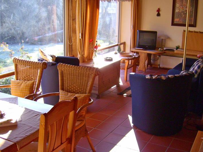 Gemütlich und komfortabel sind unsere 5 Ferienwohnungen,die mit DTV-Klassifiziert, ausgezeichnet wurden. Alle Wohnungen sind allergiebewusst und naturbelassen eingerichtet und haben folgende Basisausstattung: Wohnzimmer mit Ess- und Sitzecke 1-2 Schlafzimmer überdachte Terrasse oder Balkon Du/WC, Zentralheizung TV, DVD/CD-Player, Stereoanlage ISDN-Telefon, Fax, WLAN Einbauküche mit Geschirrspüler und Mikrowelle und diversen Küchengeräten Waschmaschine, Trockner & Bügelausrüstung stehen zur Verfügung 4 Wohnungen sind ebenerdig und 2 davon sind rollstuhlgerecht Kinder- bzw. Babyausstattungen stellen wir Ihnen bei Bedarf zur Verfügung. Da wir ein Nichtraucherhaus sind, bitten wir Sie im Gewölbekeller oder auf der Terrasse zu rauchen. Unser Gemeinschaftsraum, der "Gewölbekeller",steht allen Gästen zur Verfügung.