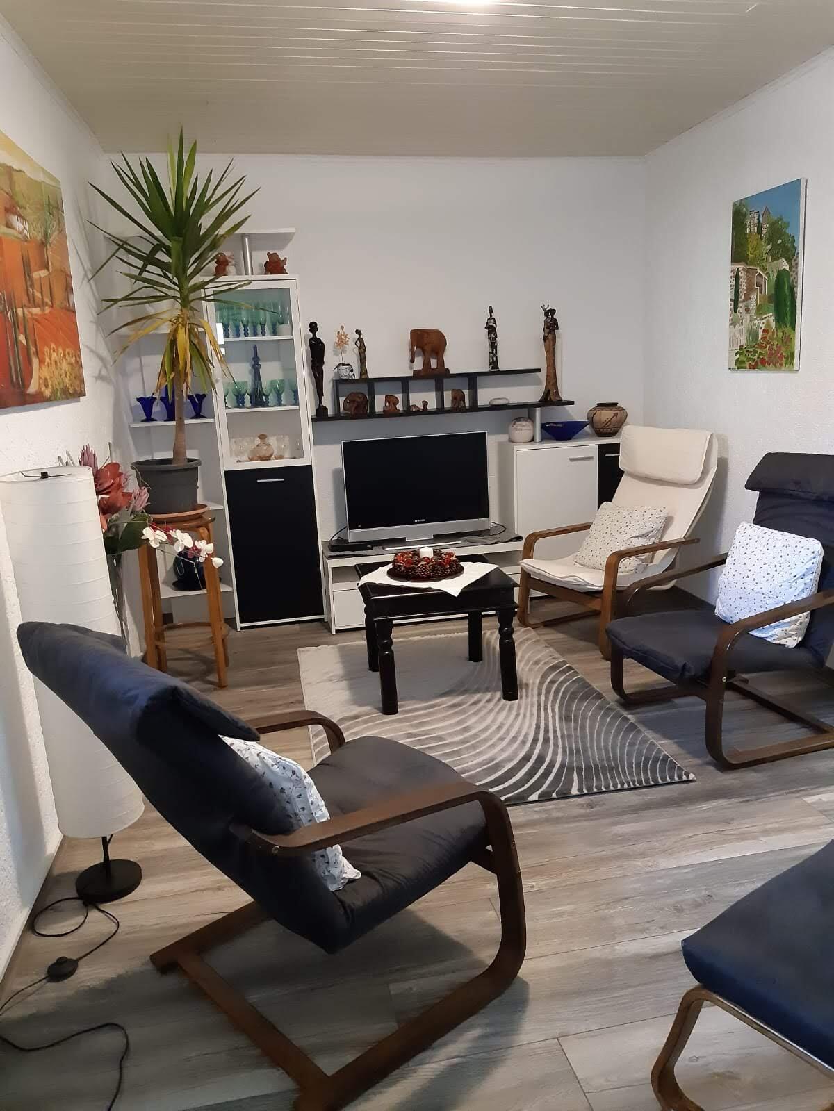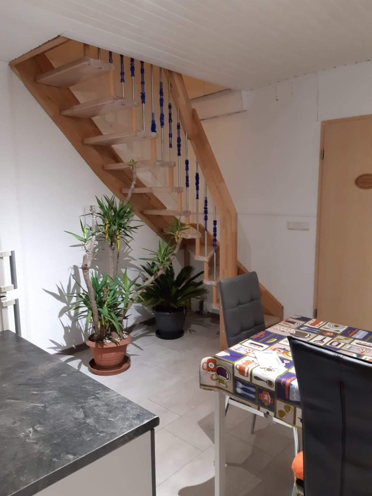 Unsere 80qm große, gemütliche Ferienwohnung befindet sich in einem separaten Haus und bietet Ihnen ein Wohnzimmer, eine Essküche, ein Doppelschlafzimmer und zwei Einzelzimmer, sowie ein Bad und ein getrenntes WC.