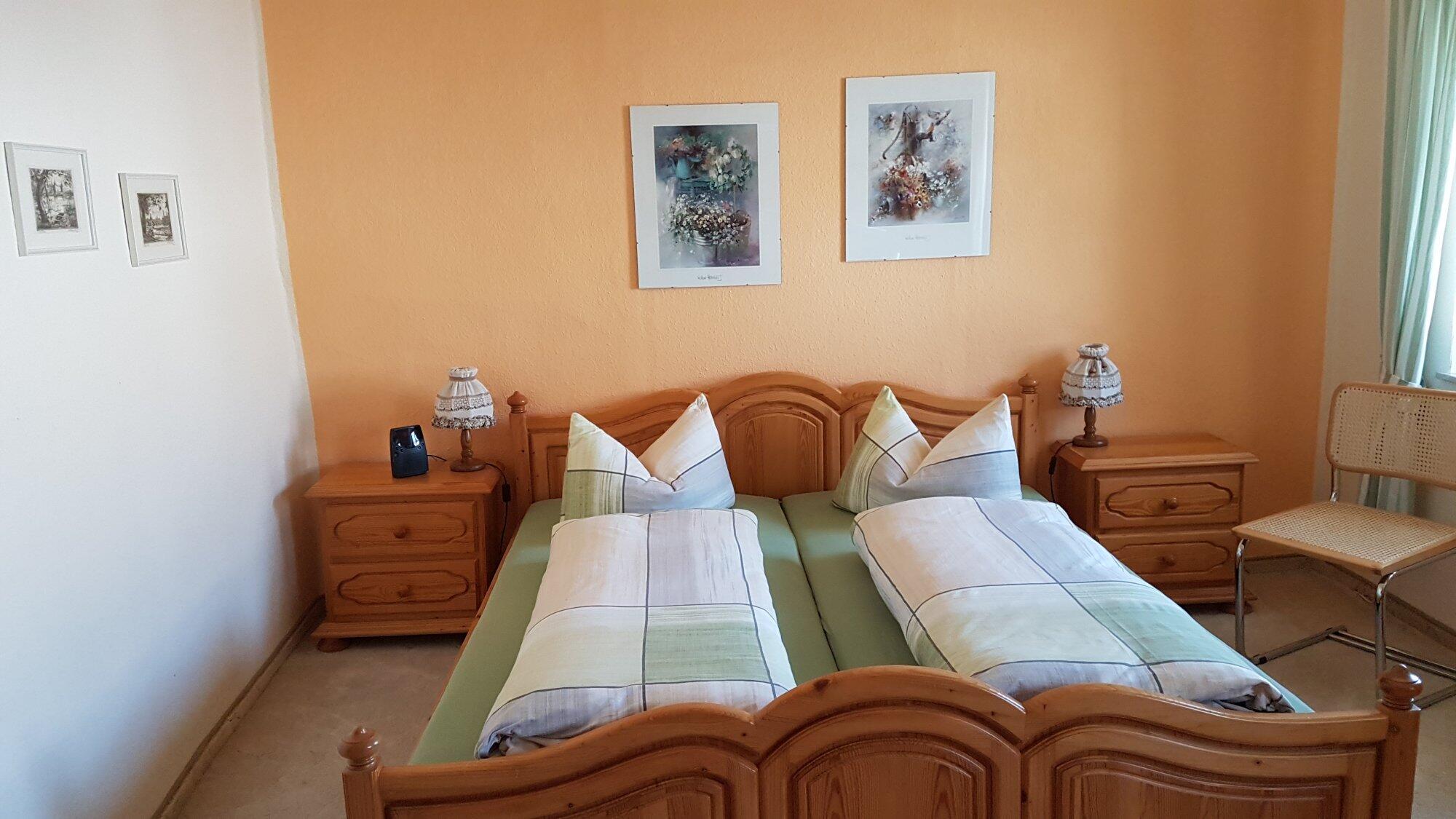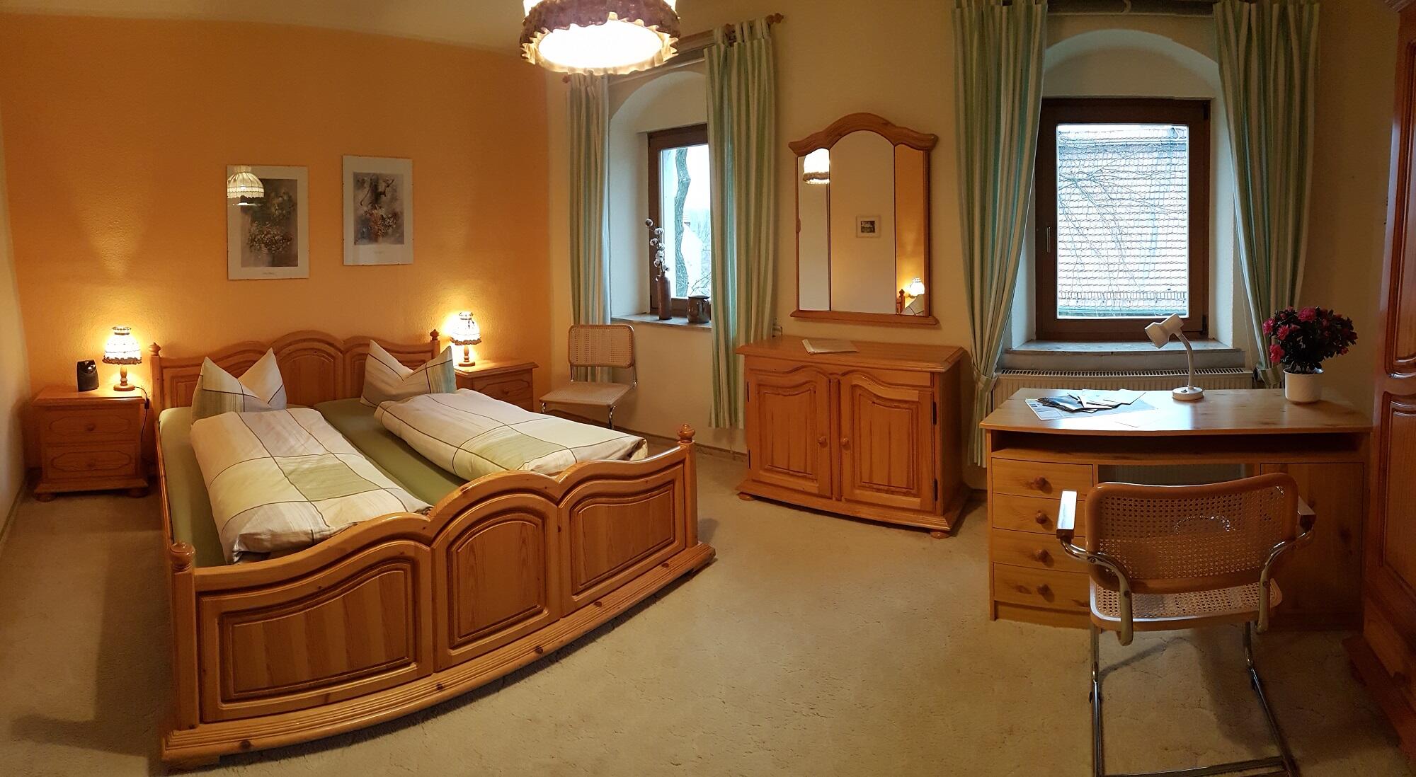 Einzelzimmer Unsere zwei Einzelzimmer sind jeweils in der 1. Etage, ausgestattet mit Dusche/WC. Massivholzmöbel prägen die Zimmer im gemütlichen Landhausstil. Doppelzimmer Unsere zwei Doppelzimmer sind jeweils in der 1. Etage, ausgestattet mit Dusche/WC. Massivholzmöbel prägen die Zimmer im gemütlichen Landhausstil.