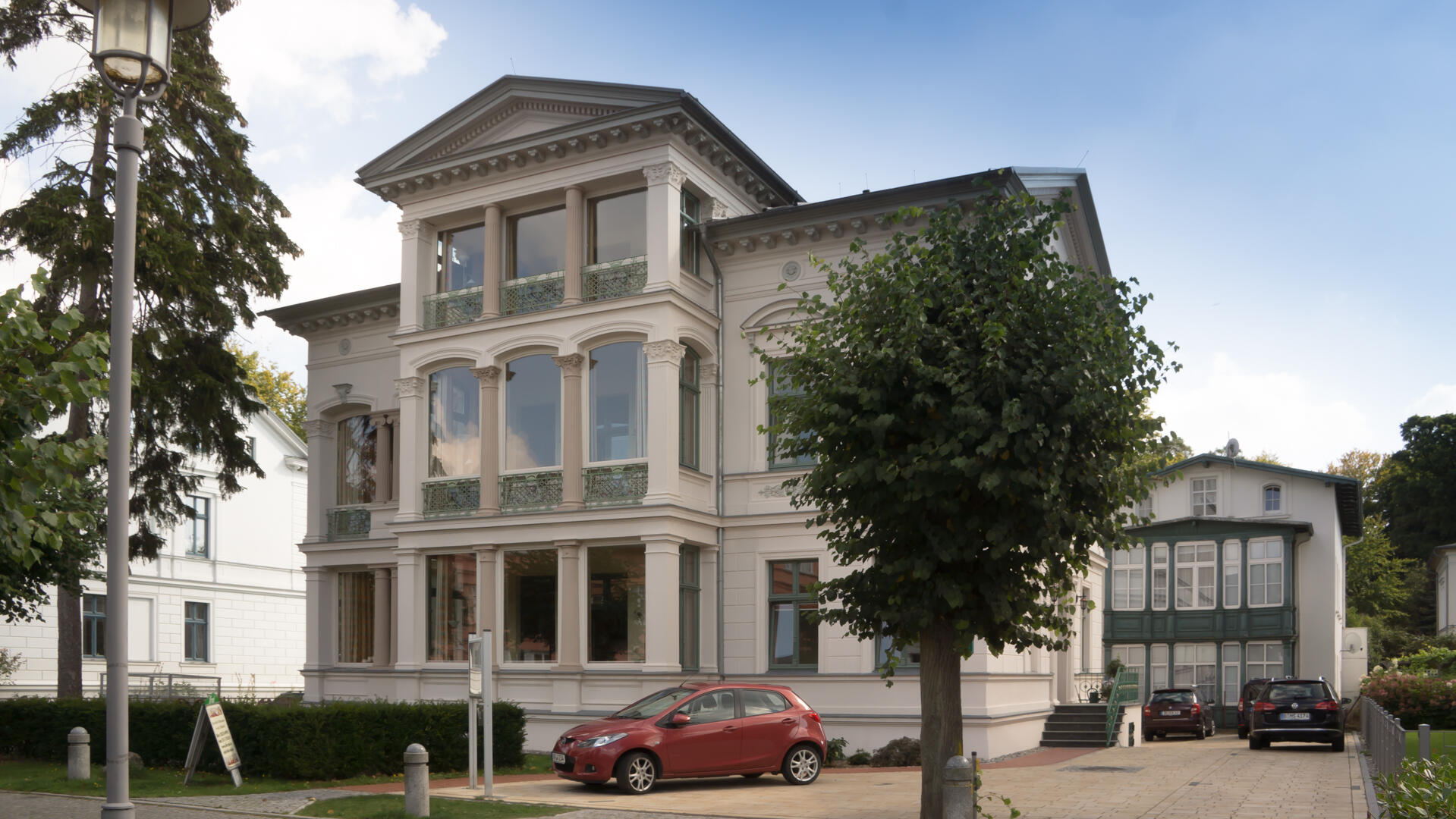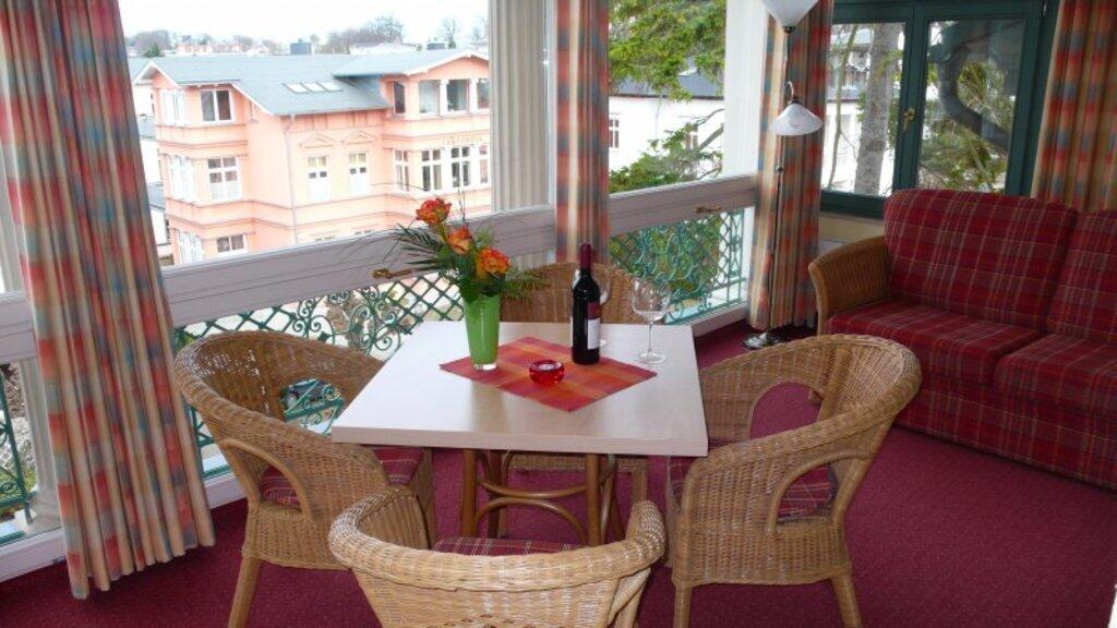 Es entstanden helle freundliche Ferienwohnungen zum Wohlfühlen. Auf der Terrasse vor dem Haus haben Sie einen herrlichen Blick auf die alten Villen im Stil der Bäderarchitektur. Im Keller stehen Ihnen Münzwaschmaschine und Münztrockner zur Verfügung. Pro Apartement stellen wir Ihnen einen kostenlosen Parkplatz. Am Haus befinden sich 6 Parkplätze und weitere sind im ca. 250 m entfernten Parkhaus angemietet. Ich biete Ihnen die Möglichkeit gegen eine Gebühr von 3,00 €/Tag einen Parkplatz am Haus zu reservieren. In unseren Ferienwohnungen können Sie per WLAN-Anschluß mit Ihrem Notebook im Internet surfen oder Ihre Mails abfragen.