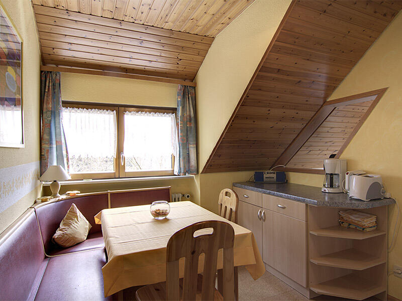 Küche: komplett eingerichtete Küche, Mikrowelle, 2-Plattenherd, Ofen, Toaster, Wasserkocher, Kaffeemaschine, Kühlschrank mit Gefrierfach, Küchentisch mit Stühlen und Eckbank
