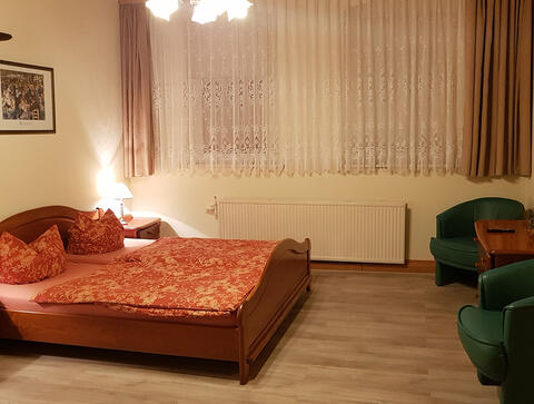 Für weitgereiste Gäste ist auch gesorgt, denn es gibt im Hause vier behaglich eingerichtete Gästezimmer mit Dusche, WC und sonstigen Annehmlichkeiten. Für diesbezügliche Anfragen steht Ihnen unser Personal gern zur Verfügung.