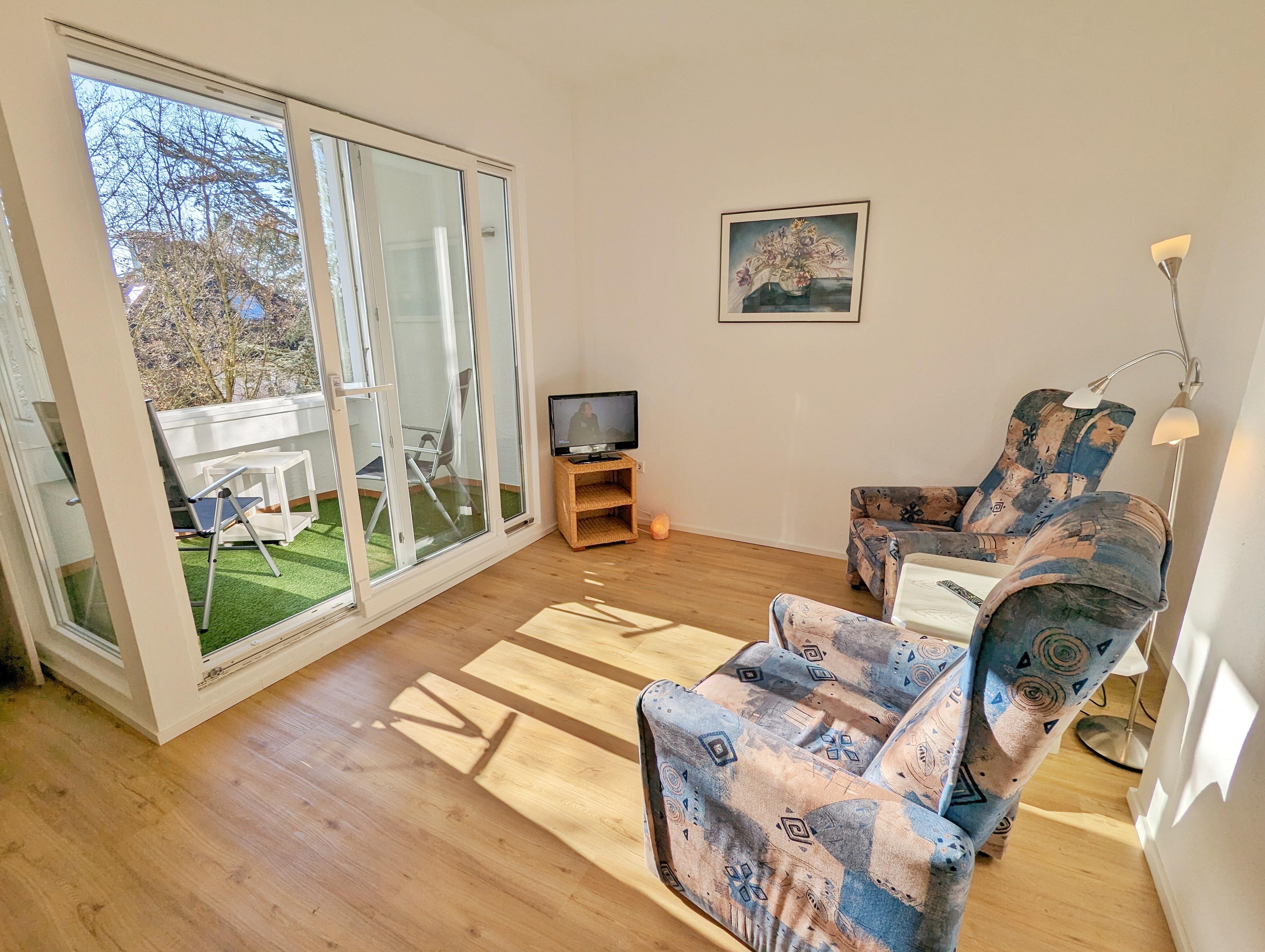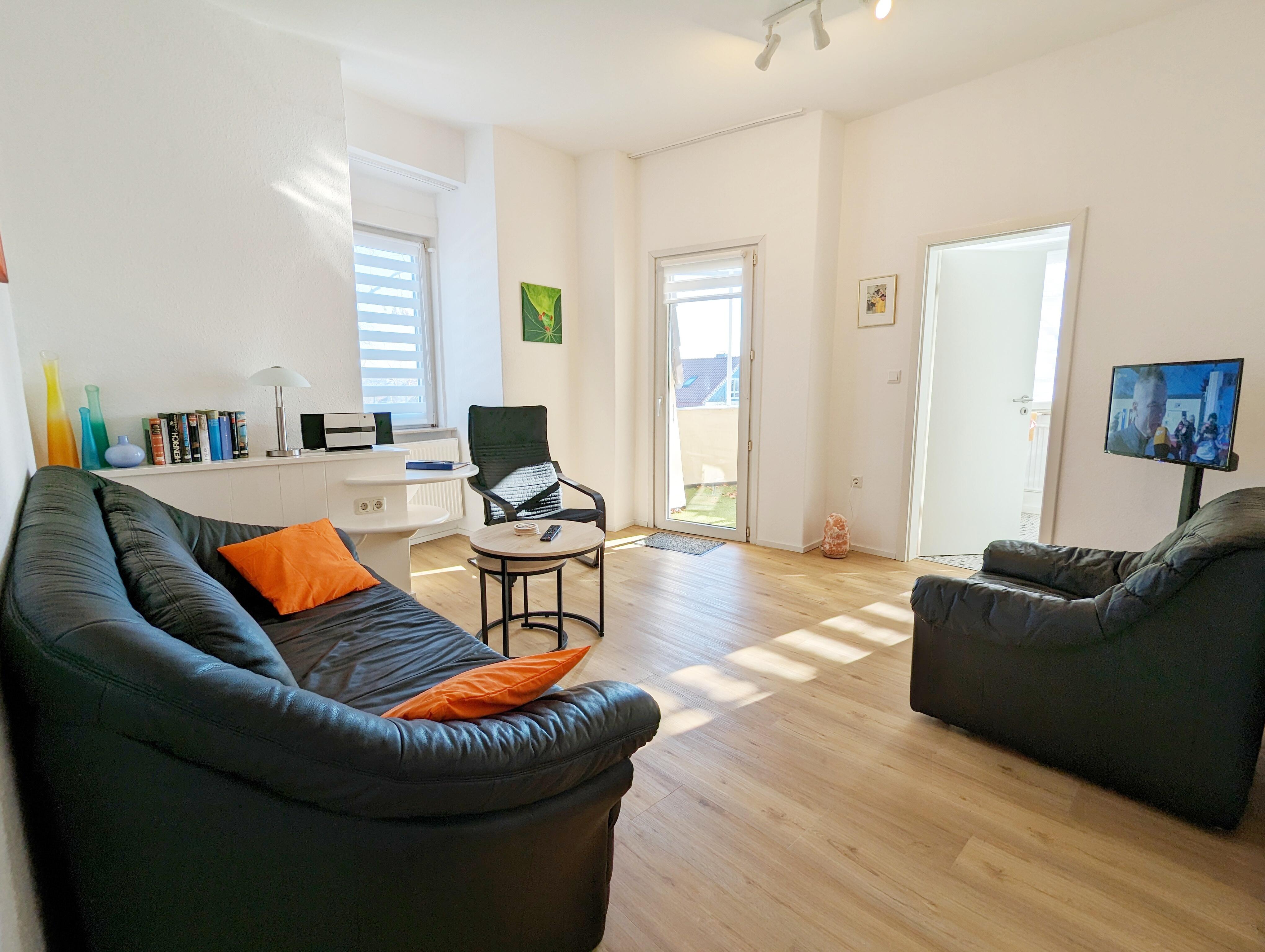 Unser Wohnung "Sonnenschein" im 1.OG mit Balkon ist ca. 60 qm groß und für max. 2 Personen und einem Schlafzimmer, oder ca. 80 qm mit zwei Schlafzimmer für max. 4 Personen ausgestattet.