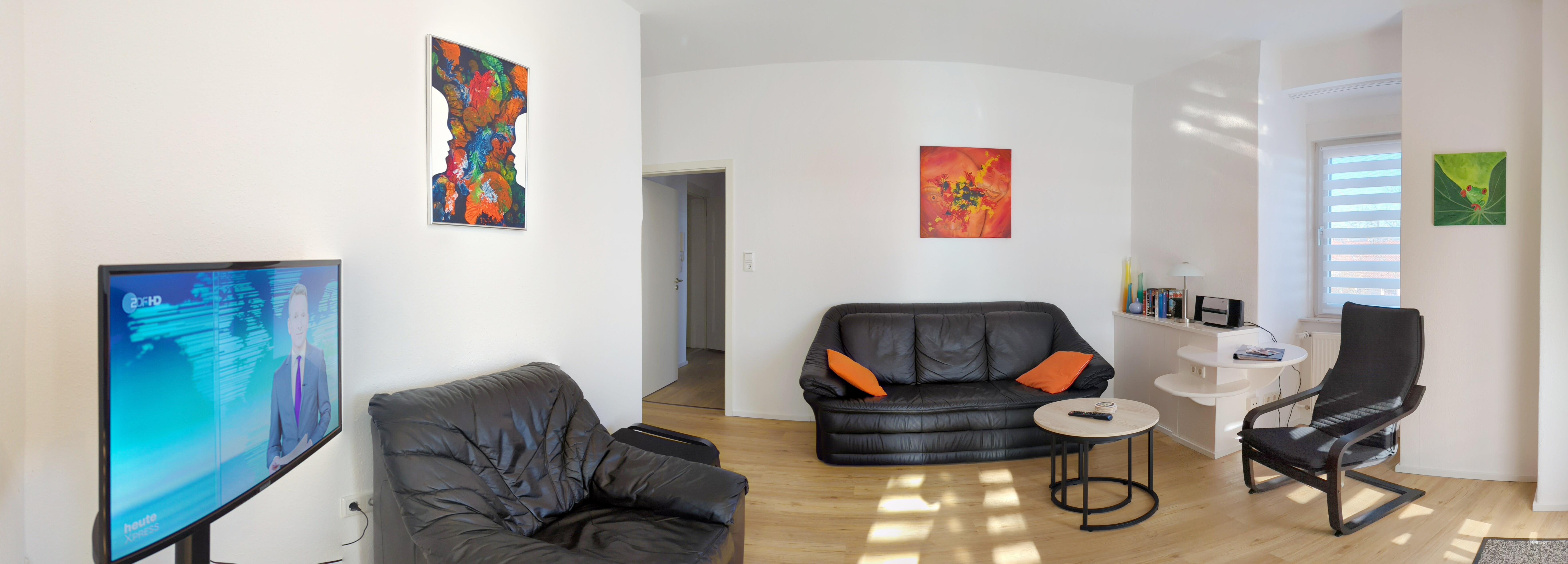 Unser Wohnung "Galerie" im 2.OG mit Loggia ist ca. 55 qm groß und für max. 2 Personen und einem Zweibett-Schlafzimmer ausgestattet.