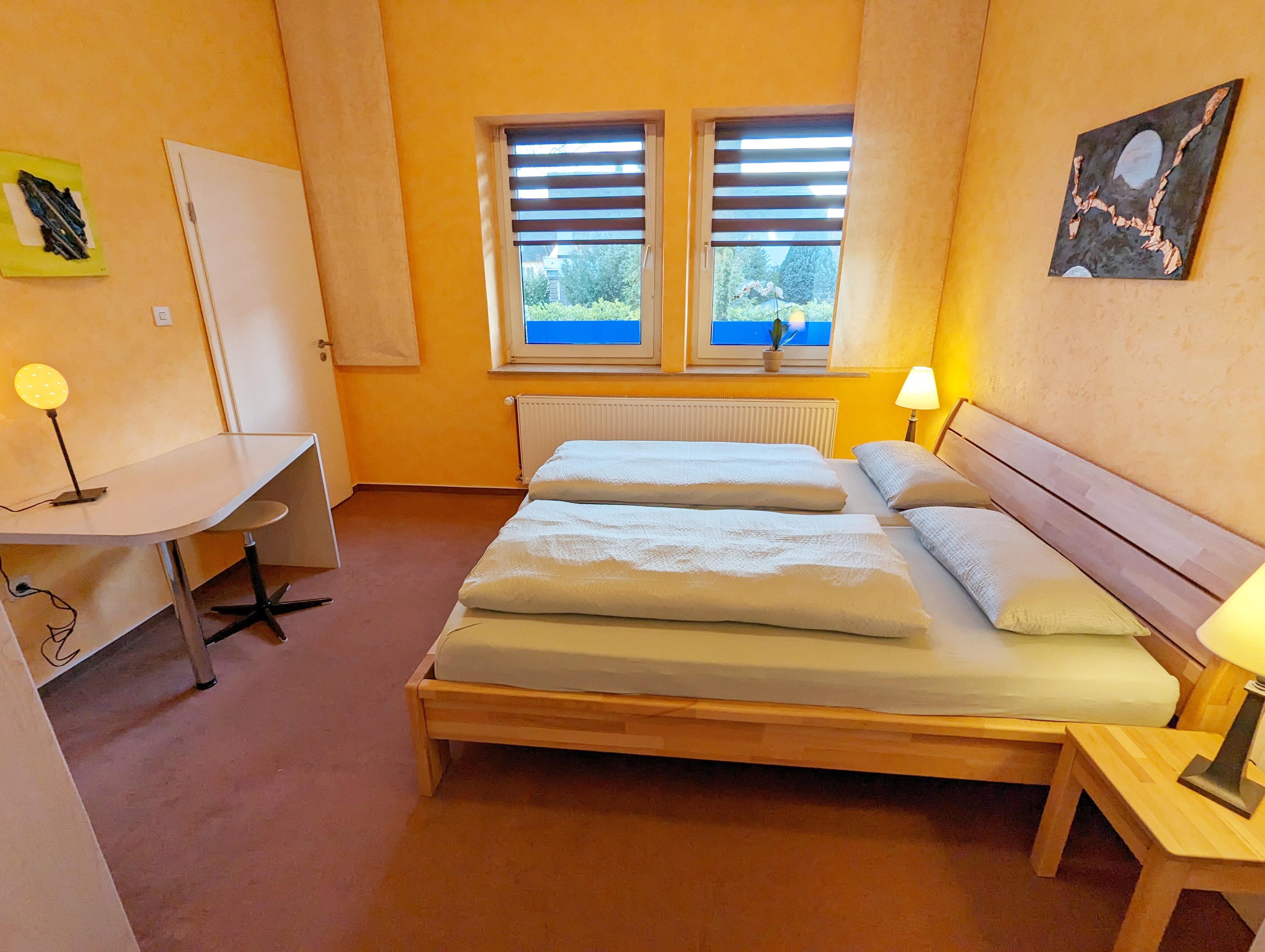 Die Wohnung "Atelier" im EG ist ca. 73 qm groß und für max. 2 Personen und einem Schlafzimmer mit Doppelbett, oder ca. 92 qm mit zweitem Schlafzimmer mit drei Einzelbetten für max. 5 Personen ausgestattet.