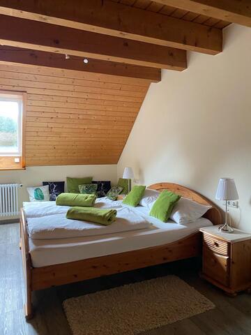 Das muss man sich ab und zu einfach mal gönnen: morgens so lange ausschlafen, dass man abends nicht ins Bett kann, weil man schon drin liegt…“ - Jochen Mariss - Raum zum Sein: Sie haben die Wahl, welche unserer sechs Wohnungen Sie zu Ihrem Ferienzuhause machen möchten. Oder träumen Sie lieber in unserem Ferienhäuschen? Wenn Sie alleine oder zu zweit Urlaub machen möchten, dann haben Sie auch die Möglichkeit, sich in unser Mini-Appartement zu kuscheln. Egal für welche Wohnfühlmöglichkeit Sie sich entscheiden, wir sind schon jetzt sicher, dass der Fernseher in diesem Urlaub zur Nebensache wird. Dennoch gehört er natürlich ebenso zur Ausstattung wie Dusche, WC, Waschbecken und eine hervorragend ausgestattete Küche. Übrigens: Für junge Familien stellen wir selbstverständlich gerne Kinderbetten, Hochstühle und Wickelauflagen zur Verfügung. Frühstücks-Erwachen! Während Sie sich morgens noch einmal umdrehen, bereiten wir in unserem Haupthaus gerne schon einmal das Frühstück für Sie vor. Ihnen bleibt also noch ein bisschen Zeit, um sich die Wünsche für den Tag zu überlegen...