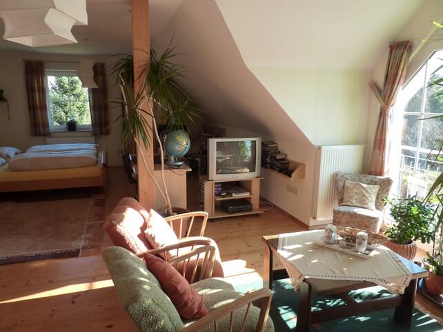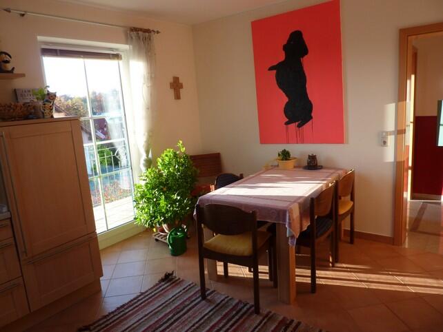 Ein Wohnschlafraum mit Doppelbett, ausziehbarer Couch und Essbereich, eine modern ausgestattete Küche und ein Bad, mit Wanne und Dusche, können auf ca. 70 m2 bis zu drei Personen beherbergen. Genießen Sie vom Balkon aus einen herrlichen Blick über die Natur des Oberpfälzer Waldes oder entspannen Sie sich im hauseigenen Garten. Internet-Nutzung wird durch kostenloses WLAN ermöglicht. Bettwäsche und ein Satz Handtücher werden Ihnen zur Verfügung gestellt. Auf Anfrage können Sie hier auch gemeinsam mit Ihrem Haustier Ihren Urlaub verbringen. Ein kostenloser Stellplatz befindet sich direkt vor der Ferienwohnung.