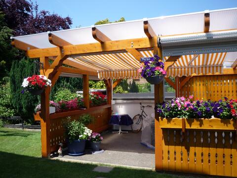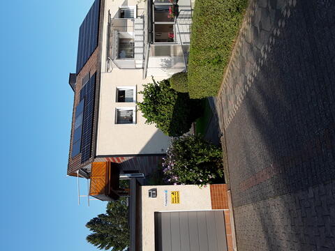 Die Ferienwohnung besteht aus zwei Schlafzimmer mit jeweils einem Doppelbett, ein Wohn- Esszimmer mit einem ca 12m² Balkon, (überdacht mit einer ausfahrbahren Markise), SAT-TV, DVD Player, CD-Radio und Wlan Internet Zugang und Schlafcouch, einer komplett eingerichteten Küche mit allen erdenklichen E-Geräten wie Herd mit Backofen und 4 Platten Ceranfeld, Abzugshaube mit Abluft, Kühlschrank, Spülmaschine, Mikro-Welle, Kaffeemaschine, Toaster, Wasserkocher, Eierkocher, Mixer, Entsafter usw, und einem Bad mit Dusche und fester Duschabtrennung und WC. Natürlich ist in dem Bad auch ein Spiegelschrank mit drei beweglichen Türen, ein Kosmetik Spiegel wie auch ein Föhn. Ein Bügeleisen mit Bügelbrett steht Ihnen in dieser Ferienwohnung zur Verfügung. Hinter dem Haus der 2 Ferienwohnungen steht für unsere Gäste eine große überdachte Terrasse zum geselligen Beisammen sein oder Grillen usw zu Ihrer Verfügung.