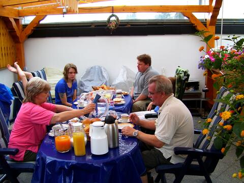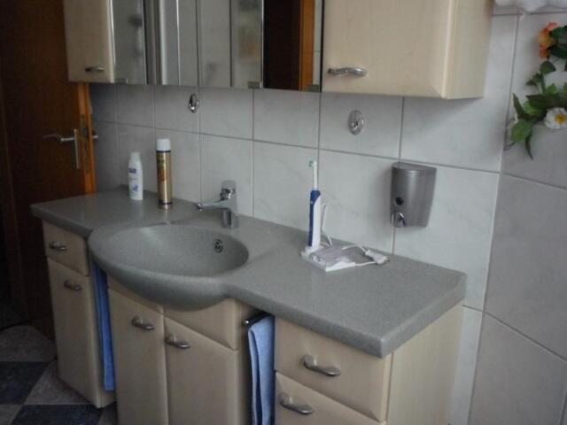 Die Wohnung von 70m² im 1. Geschoss besteht aus zwei Schlafzimmer mit jeweils einem Doppelbett, in jedem Schlafzimmer ist auch ein Flachbild TV Gerät installiert, 1 großes Wohnzimmer mit SAT-TV, CD-Radio und Wlan Internet Zugang, Schlafcouch und einem Balkon nach Süden, 1 Bad mit Dusche (feste Duschabtrennung) und WC. Natürlich ist in dem Bad auch ein Spiegelschrank mit beweglichen Türen, ein Kosmetik Spiegel wie auch ein Föhn. Ab Belegung von 3 Personen Gäste WC, und eine große Einbauküche mit Geschirrspüler, Herd mit Backofen und 4 Platten Ceranfeld, Absaughaube mit Abluft, Mikrowelle, Gefrierschrank, Eierkocher, Wasserkocher, Kaffeemaschine und Toaster. Auch alle Rollläden sind mit E-Motor ausgerüstet. Auf dem Balkon sind Sitzmöbel und Sonnenliege vorhanden. Ein Bügeleisen mit Bügelbrett steht Ihnen ebenso wie ein Kinderhochstuhl und ein Kinderreisebett zur Verfügung. Hinter dem Haus ist eine große überdachte Terrasse zum geselligen Beisammen sein, Grillen usw welche Sie als Gäste gern benutzen können.