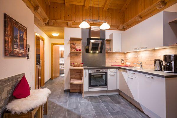 Das Appartement Abendrot liegt ebenerdig, an der Südostseite des Hauses. Wenn Sie am Abend unter einer Weinlaube vor der Wohnung sitzen und gegen die Dreitausender Gipfel der Zillertaler Alpen blicken, sehen Sie ein unvergessliches Abendrot, entweder weil dieses tatsächlich zu sehen ist, oder weil Sie vielleicht in der verführerischen Stimmung ein Gläschen zu viel getrunken haben. Wenn das auch noch unser Schnaps war, dann könnte aus dem Rot auch ein leichtes Blau werden. Nicht nur für so manchen lieben Vierbeiner wurde diese kleine Oase eine zweite Heimat, nein, viele unserer treuen Zweibeiner freuen sich jedes Jahr auf ein erfrischendes Frühstück und eine abendliche Speckjause vor der Wohnung unter der Weinlaube. Es ist ein eigenes Flair dort und viele lassen sich auch ein aromatisches Grillen nicht entgehen. Während die einen die Sonne oft schon im Februar auf einer Liege genießen, spielen die anderen daneben, in einer kleinen Halle, fanatisch Tischtennis, bei jeder Witterung. Die Schlafzimmer, ein Zweibettzimmer und ein Dreibettzimmer, sind kreativ gestaltet. Die Dusche ist vom WC getrennt, denn, so gerne man sich natürlich mag, es gibt Sachen die man lieber alleine erledigt. Der Kern des Apartments ist ein großes, gemütliches Wohnzimmer mit Kochecke und Kachelofen. Der Raum bietet genügend Platz, sich darum zu prügeln, wer denn nun kochen darf. Der Verlierer darf sich auf einer der zwei eingebauten Liegen ausruhen oder auch den Kachelofen aufheizen und wenn er schließlich ins Schwitzen gerät, sollte er sich im TV nicht unbedingt die Erotikprogramme ansehen. Das Apartment Morgenrot liegt im ersten Stock des Hauses. Das Apartment wurde total neu gestylt, geplant und ausgeführt nach den Urbedürfnissen des Menschen. In allen Belangen eine gelungene, moderne "Lustgrotte". Die Küche positioniert, wie schon in der Steinzeit, im Zentrum, allerdings mit allem Komfort. Die Stube eingebaut in eine sichere Nische mit gemauertem Eingang. Die beiden Schlafzimmer sind behaglich, mystisch, ergreifend und vor allem erotisch. Teste deine Sinne, Wohlfühlen ist genetisch angeboren. Ein breiter, massiver Holzbalkon führt Sie direkt zum Sonnenaufgang. Lassen Sie sich generell vom Holz berühren und inspirieren. Holz lebt und vermittelt Emotionen. In den Sommermonaten werden Sie schon sehr früh von den ersten Sonnenstrahlen wachgeküsst. Wenn Sie dann auch tatsächlich aufstehen, beginnt Ihr Abenteuer. Oder, Sie werden sonst wachgeküsst, bleiben liegen und das Abenteuer beginnt auch :) Wenn Sie duschen wollen, werfen Sie ihren rücksichtsvollen Mitbewohner, der die Sportzeitung unbedingt auf dem WC lesen muss, einfach raus. Er kann ein separates WC daneben benutzen. Sollten Sie es tatsächlich schaffen, Ihren Partner freiwillig aus dieser Küche zu bekommen - nur 5 Gehminuten entfernt befindet sich ein gutes Hotel zum Essen. Ja, und wenn im Herbst der Platzhirsch vom Gatter nebenan zu röhren beginnt, machen Sie einfach mit, das stört hier niemanden und belebt die Sinne. Sollten Sie sich allerdings auch suhlen, vergessen Sie sich nicht zu waschen :)