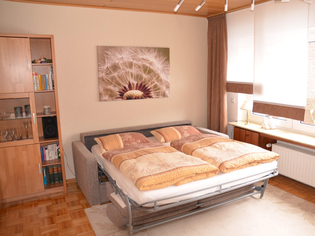 Die geräumige Ferienwohnung bietet mit 65 qm Platz für maximal vier Personen und ist mit allerlei Annehmlichkeiten ausgestattet. Auch Ihre vierbeinigen Familienmitglieder sind hier willkommen. Bei schönem Wetter lädt die überdachte Terrasse zum Frühstücken, Grillen oder auch Relaxen ein. Auch Rauchen ist dort - aber nur dort - erlaubt. Sie wohnen in einer ruhigen Gegend, zehn Gehminuten vom Ortskern Everswinkels entfernt. Zum Vitusbad (Abenteuerbad) und zum Vitus-Saunadorf gelangen Sie nach einem kurzen Waldspaziergang in fünf Minuten.
