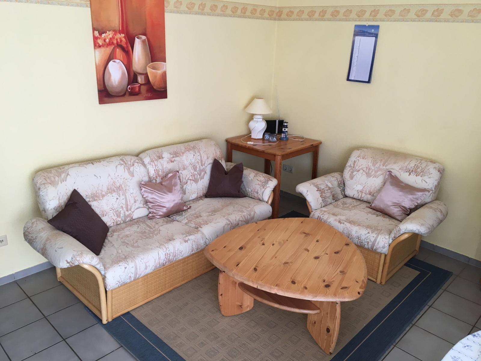 In unserer liebevoll eingerichteten Ferienwohnung im Erdgeschoss finden Sie: 50 qm Wohnfläche, 2 - Zimmer - Ferienwohnung, Wohnzimmer, Küche, Schlafzimmer, Duschbad und Terrasse Ausstattung: Wohn- und Essbereich mit gemütlicher, großer Couch (ausziehbar zum Schlafsofa) komplett ausgestattete Küche mit 4 – Feld – Herd Schlafzimmer, Digitale SAT-Anlage / TV, Dusche / WC, Terrasse mit Mobiliar und Strandkorb In unserer liebevoll eingerichtenten Ferienwohnung im Obergeschoss finden Sie: 45 qm Wohnfläche, 2 - Zimmer - Ferienwohnung, Wohnzimmer, Kochecke, Schlafzimmer, Duschbad und Balkon Ausstattung: Wohn- und Essbereich mit gemütlicher,großer Couch, komplett ausgestattete Küche mit 4 – Feld – Herd,Schlafzimmer Digitale SAT-Anlage / TV, Dusche / WC, Balkon mit Mobiliar