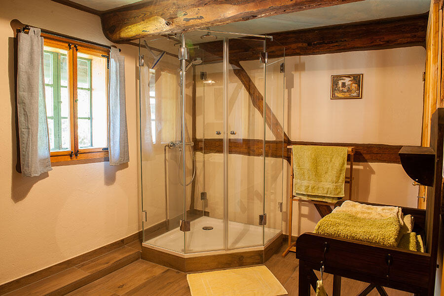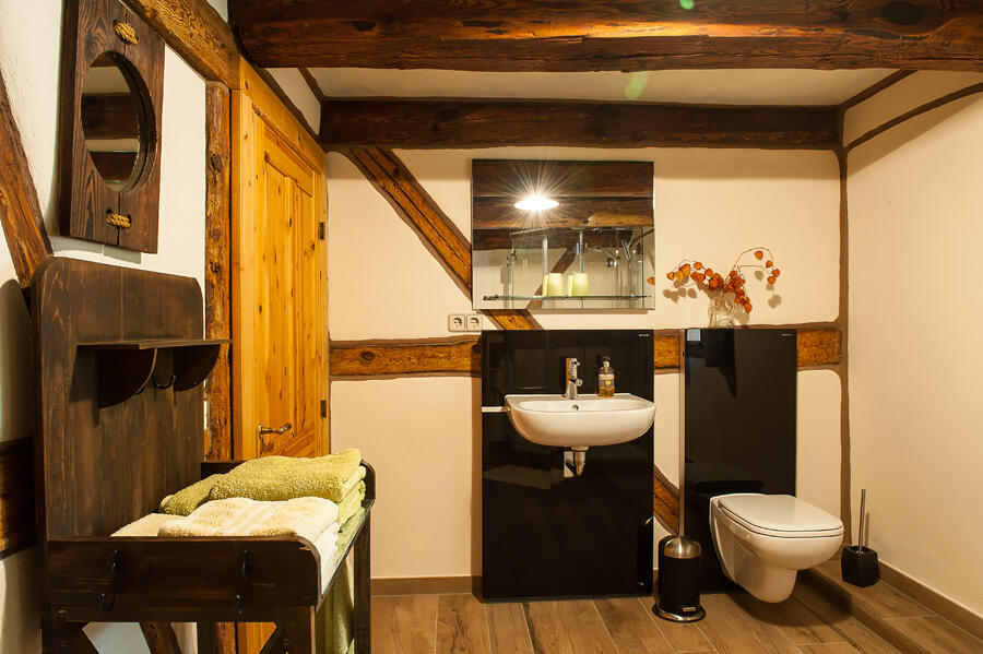 Unsere Pension wurde im Jahr 2007 umfangreich saniert. Wir können Ihnen 10 Betten in 5 individuell eingerichteten Doppelzimmern als komplettes 4-Sterne Ferienhaus, in der Nebensaison und bei kurzfristigen Buchungsschritten auch einzeln, anbieten. Das Doppelzimmer im Erdgeschoss mit eigenem Bad kann mit dem Gemeinschaftsraum und dessen komfortabler Küche (mit E-Herd, Spülmaschine und Kühlschrank inkl. Tiefkühlfach) barrierefrei genutzt werden. Dieser Bereich ist durch eine Fenstertür mit der Terrasse verbunden.
