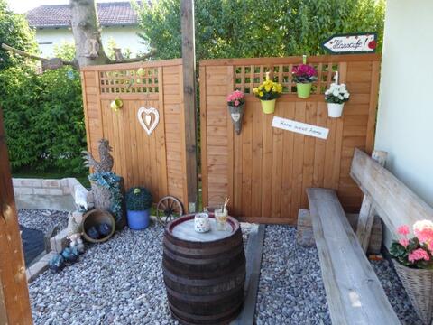 Nichtraucherwohnungen ( Rauchen im Garten erlaubt ), komplett neu renoviert, SAT TV und Internet, Zentralheizung, Kinder erwünscht, Hunde sind uns willkommen ( 10 € pro Tag ). Bettwäsche und ausreichend Handtücher inbegriffen. Bei mehrwöchigem Aufenthalt ist eine Zwischenreinigung pro Woche kostenlos. Wohnung 1: 64 qm Separate Küche mit eigenem Essplatz, großer Schlaf - Wohraum mit TV, neues Familienbad mit Wanne, Dusche und WC, großer Garten zum Wohlfühlen und Entspannen. Wohnung 2: 64 qm ( kleine Luxusferienwohnung ) Separate Küche mit eigenem Essplatz, großer Schlaf-Wohnraum mit TV und Internet, Wintergartenambiente, Südbalkon mit Blick auf die Chiemgauer Berge. Neues Bad mit WC und Dusche. Für die gemütliche Abendatmosphäre an kalten Herbst- und Wintertagen sorgt ein Schwedenofen. Holz kostenfrei im Hof. Großer Garten zum Wohlfühlen und Entspannen.