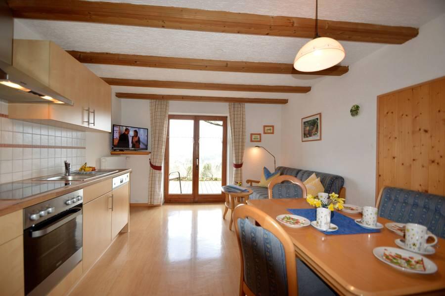 Unsere Ferienwohnungen (45 - 80 m²) sind ausgestattet mit je einem separatem Wohn- und Schlafzimmer, Dusche oder Bad mit WC und Föhn. Sie verfügen über eine komplett eingerichtete Küche/Wohnküche mit Spülmaschine, Backofen, Kaffeemaschine, Wasserkocher usw..