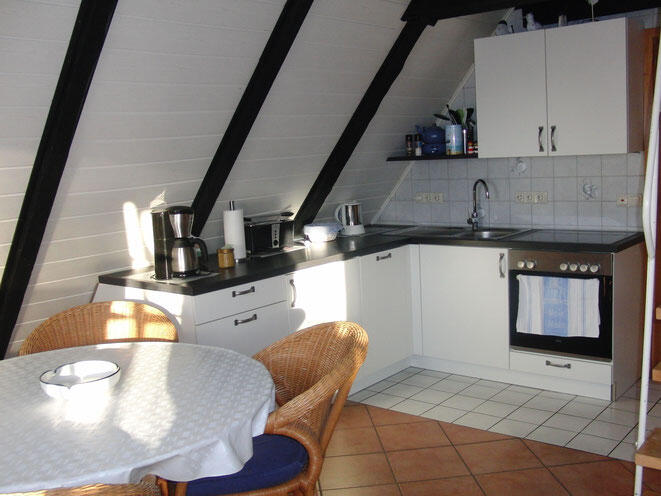 Die Ferienwohnung ist ca. 55m² groß und bietet genug Platz für 2-4 Personen. Sie hat einen seperaten Eingang im 1. Stock, eine seperate Terrasse mit Grill und Strandkorb.