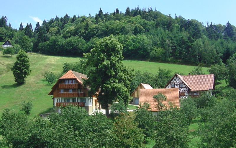 Unser Haus in ruhiger Lage und herrlichem Panorama ist umgeben von Wald, Wiesen, Schwarzwälder Kirsch-, Obst-, Zwetschgen- und Zibartenbäumen.