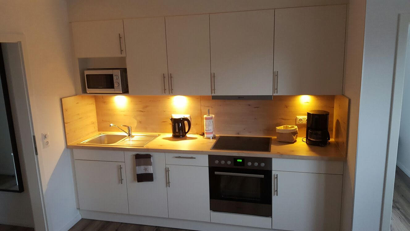 1 Schlafraum, 1 Wohnschlafraum mit Kochzeile, Badezimmer, ca 51 m² Allergiker-Wohnung, Kabel-TV, Wäschegestellung, Kinderbett, Hochstuhl, Parkplatz am Haus, kostenfreies WLAN Die Küche ist ausgestattet mit Backofen, Mikrowelle und Spülmaschine 1 Wohnschlafraum mit Schlaf-Couch, Kochzeile, Badezimmer, ca 25 m² Allergiker-Wohnung, Kabel-TV, Wäschegestellung, Parkplatz am Haus Kochzeile mit Mikrowelle und Spülmaschine, kostenfreies WLAN