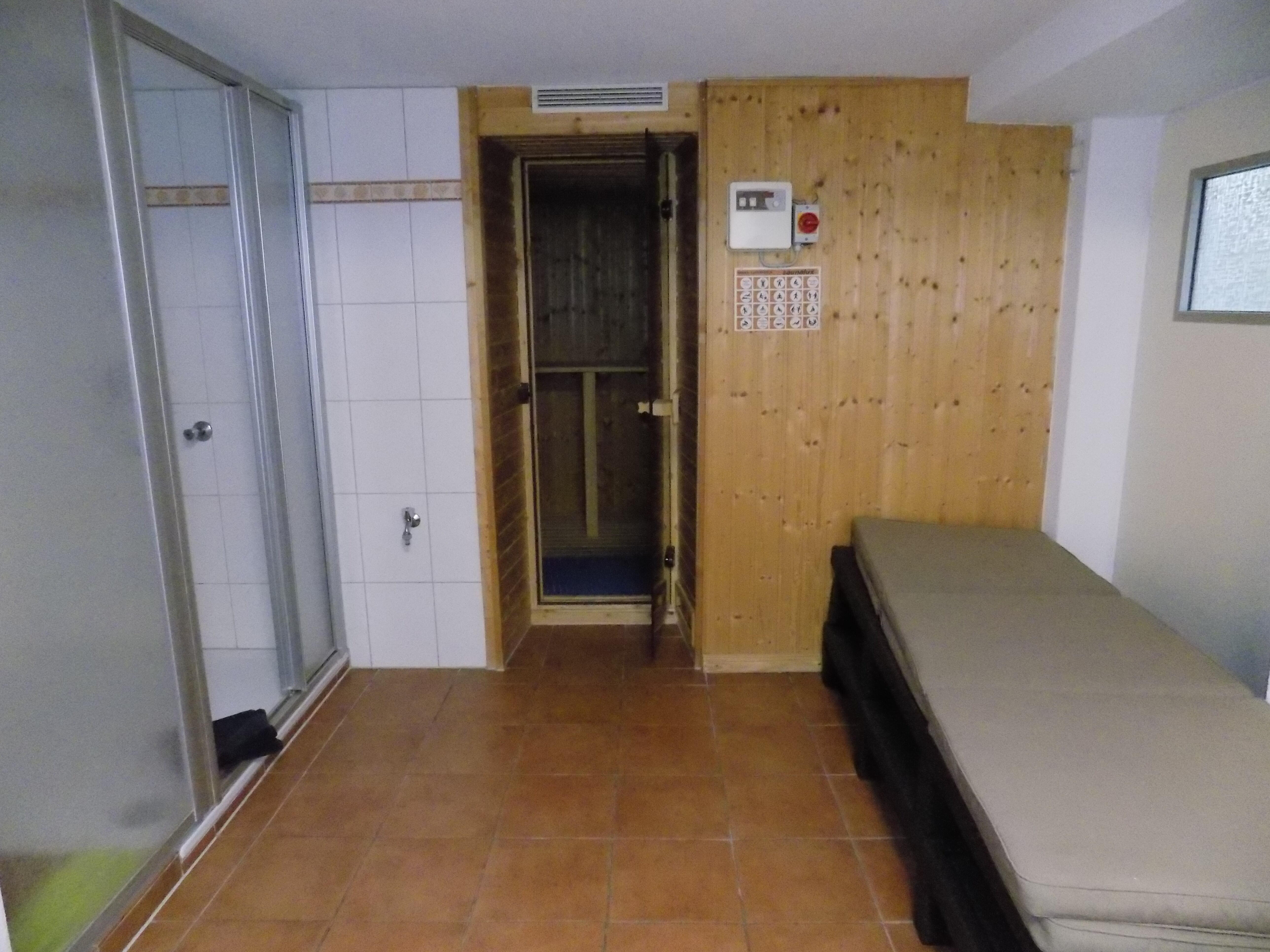 • große Sauna mit Relaxliegen und einer weiteren Dusche im Keller