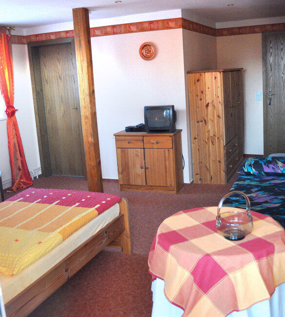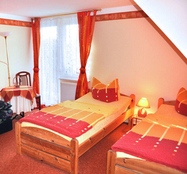 Ausstattung der Gästezimmer: 3 Gästezimmer Zimmer „Blick Schwerin ohne Balkon“: separates Bad mit Dusche / WC Zimmer „Blick Schwerin mit Balkon“: Bad mit Dusche / WC Zimmer „Teichblick“: mit Balkon, Bad mit Dusche / WC, Aufbettungsmöglichkeit Jedes Zimmer verfügt über: W-Lan SAT-TV Sitzmöglichkeiten Nutzung einer Gemeinschaftsküche Pkw-Stellplatz auf dem Grundstück Grill- und Räuchermöglichkeit im Garten Nichtraucherzimmer Bettwäsche und Handtücher inklusive