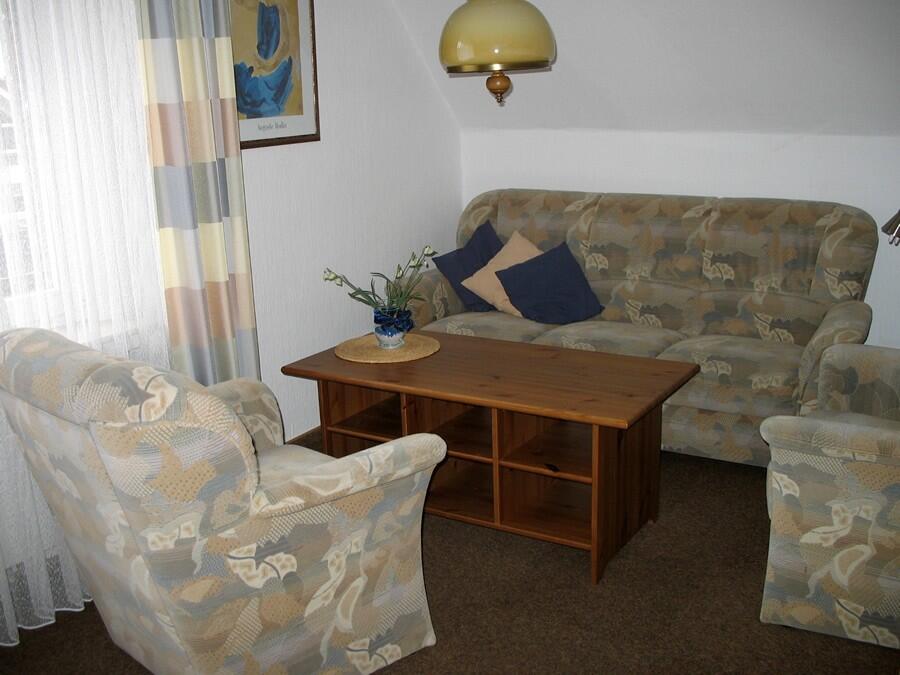 Die Wohnung ist für 2 - 4 Personen eingerichtet. Das Wohnzimmer ist mit Sitz- und Essecke ausgestattet. Fernseher, DVD-Player, Radio mit CD-Teil sind vorhanden. Wenn Sie mögen, erhalten Sie einen Gastzugang zum WLAN. Haben Sie Lust zu grillen oder bei schönem Wetter in der Sonne zu liegen? Grill und Gartenliegen stehen Ihnen im Garten zur Verfügung.