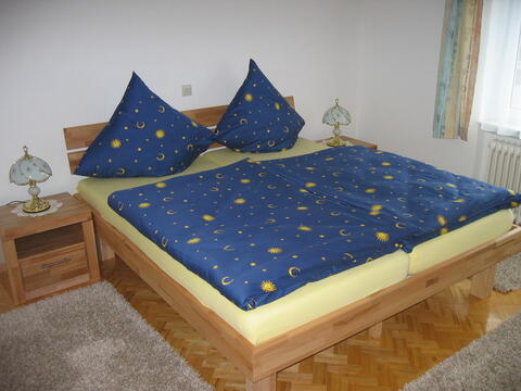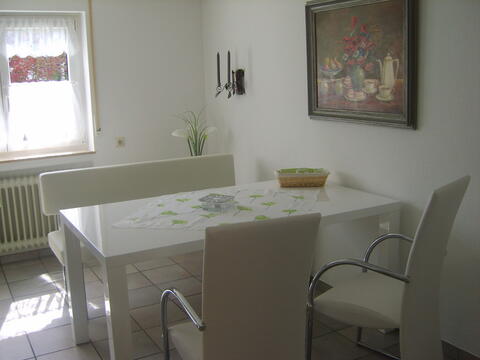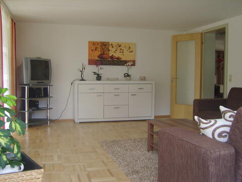Die Nichtraucherwohnung liegt in der 1. Etage, ist neuwertig eingerichtet und hat einen Balkon. Sie ist ca. 100 qm groß, verfügt über zwei Schlafzimmer, ein Wohnzimmer, eine Küche, ein altersgerecht umgebautes Bad mit WC sowie ein separates Gäste-WC. Die Küche verfügt über Kühlschrank, Herd, Backofen, Mikrowelle und Wasserkocher. Internetzugang, Kabelfernsehen und eine Stereoanlage sind ebenfalls vorhanden. Eine kurze Anleitung und Auflistung der Sender liegt den Geräten bei. Zur Ferienwohnung gehört eine Einzelgarage.