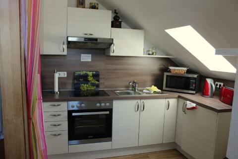 Unsere Ferienwohnung, die 2011 eröffnet wurde, ist aufgeteilt in einen großen Wohn-/Schlafraum und ausgestattet mit einem Doppelbett, einem geräumigen Kleiderschrank und einer gemütlichen Sofaecke. Im Wohnbereich befindet sich zudem ein LCD-Fernsehgerät, ein Sat-Receiver, ein DVD-Player, ein Radio mit CD-Player und ein Esstisch. Auf Wunsch erhalten Sie - gegen eine geringe Gebühr von 5,00 € - für die gesamte Dauer Ihres Aufenthalts einen WLAN-Zugang in der Wohnung. n der neuen, modernen Einbauküche finden Sie alles, was Sie zum kochen benötigen. Backofen, Ceranfeld, Kühlschrank mit Gefrierfach, Mikrowelle, Toaster, Senseo-Kaffeemaschine, Filterkaffeemaschine, Eierkocher, Wasserkocher, elektrische Brotschneidemaschine, ein elektrisches Handrührgerät, Waffeleisen, sowie reichlich Geschirr und Besteck. Das Tageslicht Badezimmer ist ausgestattet mit Dusche, WC, Waschbecken, Handtüchern und Föhn, sowie Schränken in denen sie ihre Kosmetikartikel abstellen können. Zur Wohnung gehören außerdem ein kleiner Flur, ein PKW-Stellplatz sowie eine Sitzecke im Garten, in der Sie den Sommer genießen können. Bettwäsche, Handtücher, Tischwäsche, Energiekosten, Endreinigung und die "MeineCardPlus" sind bei uns im Übernachtungspreis enthalten. Lediglich der Kurbeitrag in Höhe von 1,50 € pro Person und Tag kommt ab 15 Jahren zum Übernachtungspreis hinzu. Für unsere kleinen Gäste steht kostenlos ein Kinderbett mit Bettwäsche und ein Hochstuhl zur Verfügung. Kindergeschirr und Besteck ist ebenfalls vorhanden.