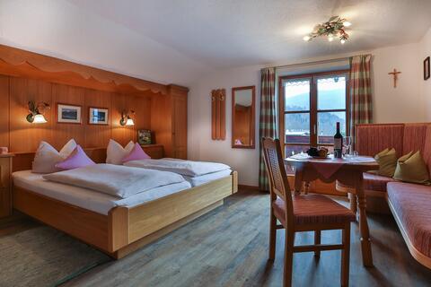 Gästezimmer Komfortzimmer für einen entspannten Urlaub Gemütliche Zimmer, ausgestattet mit Couch, Sitzecke, TV, Kühlschrank, Balkon und Dusche/WC erwarten Sie in unserem Haus. Morgens bieten wir unseren Gästen ein reichhaltiges Frühstücksbuffett mit frischen Produkten aus dem Berchtesgadener Land an. Verbringen Sie gesellige Stunden in unserer gemütlichen Bauernstube mit Kachelofen. Ferienwohnung Für 2 Personen Unsere Ferienwohnung verfügt über eine Wohnküche mit TV, komplett ausgestatteter Küchenzeile mit 2-Platten-Ceranfeld, Spülmaschine, Mikrowelle, Kaffeemaschine und Toaster. Die Wohnung hat 1 Schlafzimmer, Dusche/WC, 2 Balkone und kann auch mit Frühstück gebucht werden. Brötchenservice auf Wunsch.