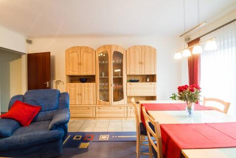 Die Ferienwohnung hat eine Größe von 76 m² und verfügt über ein großes Wohnzimmer, zwei Schlafzimmer (1 x 2 Einzelbetten und Babybett; 1 x Doppelbett), eine vollständig eingerichtete Küche, ein freundliches Badezimmer und einen Balkon, welcher mit Balkonmöbeln und Grill ausgestattet ist. Pkw können in einem Carport abgestellt werden und auch für Ihre Fahrräder gibt es einen sicheren Unterstand. Natürlich verfügt die Wohnung über einen kostenlosen WLAN-Zugang und einen digitalen Satelliten-TV. Unsere Ferienwohnung ist eine Nichtraucherwohnung. Ihren Hund können Sie gerne auch mitbringen. Wir bitten Sie jedoch, dies im Vorfeld mit uns abzusprechen.