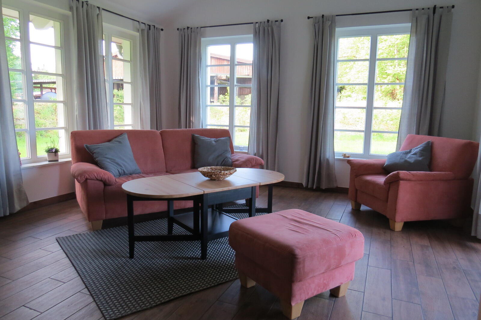 Unser Feriehaus ist 2015 gebaut worden und besitzt vier Schlafgelegenheiten. Vom Haus kann man über Wiesen und Wälder sehen, bis hin zum Moor. Die Natur geniesen und einfach mal den Tieren beim Fressen zugucken, im Sommer von der Terrasse und im Winter vom warmen Ofen aus. Wir freuen uns auf Euren Besuch.