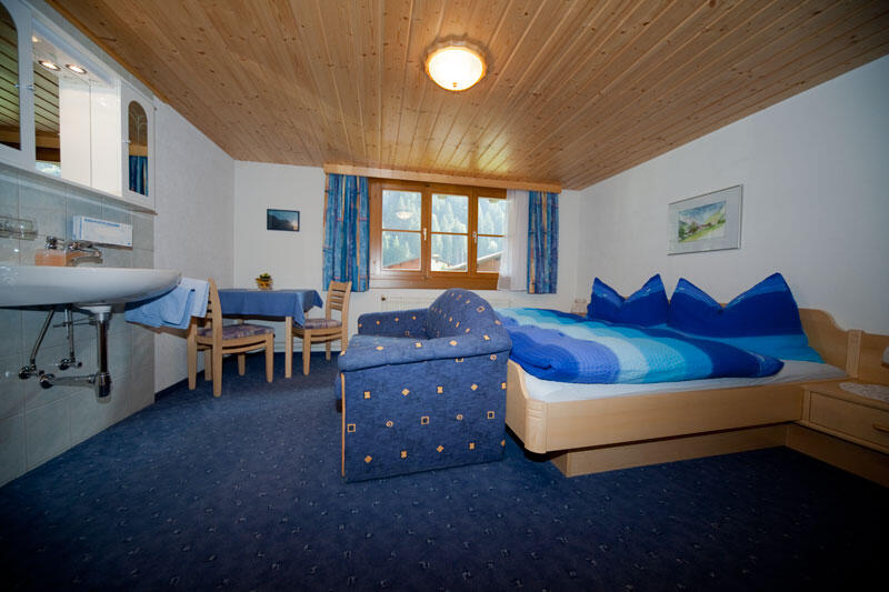 Doppelzimmer "Silvretta" Das Zimmer liegt im ersten Stock und ist mit Waschgelegenheit, komfortablem großen Doppelbett, Schrank und Sitzgelegenheit eingerichtet. Doppelzimmer "Verbella" und Doppelzimmer "Ganifer" Diese Zimmer liegen im zweiten Stock und sind mit Waschgelegenheit, komfortablem großen Doppelbett, Schrank und Sitzgelegenheit eingerichtet und haben einen Balkon. Beide Zimmer sind identisch eingerichtet, deshalb weiter unten nur die Bildergalerie von einem Zimmer.
