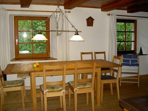 Freistehendes Ferienhaus 100 qm mit großem rundum eingezäuntem Garten 2 -7 Personen Nichtraucherhaus familienfreundlich Hunde willkommen Wohnzimmer, 4 Schlafzimmer, Küche, Bad mit Dusche, 2 Waschbecken u. WC, Gäste-WC, Vorratsraum,Abstellraum für Fahrräder, Garage, Balkon, Hausterrasse, Garten, Liegewiese Elektroherd, Kühl/Gefrierschrank, Waschmaschine, Mikrowelle, Kaffeemaschine, Toaster, Sofa, zwei Kinderhochstühle, Kinderbett, Keyboard, Sat-TV, Radio, CD-Player, Föhn, mobiler Grill, Biergarnitur, Gartenmöbel, Liegestühle Gesellschaftsspiele für drinnen und draußen, Wanderkarten, Schlitten, Tellerrutscher