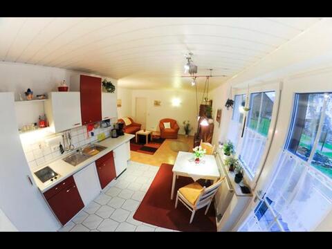 Sehr ruhige, zentrale Lage ( kein Durchgangsverkehr ) in Kurparknähe separater Eingang gepflegte, mod. Wohnung für 2 Pers., ca. 48 m² getrennter Wohn - Schlafraum komplett eingerichtete Küche Tageslichtbad mit Dusche und WC Sat-TV, Radio und kostenfreies WLAN Balkon und Liegewiese kostenloser Parkplatz direkt am Haus Bettwäsche und Handtücher inklusive