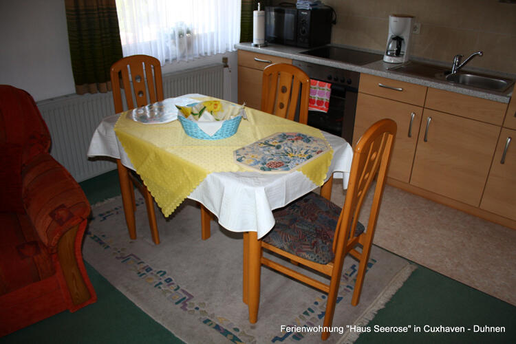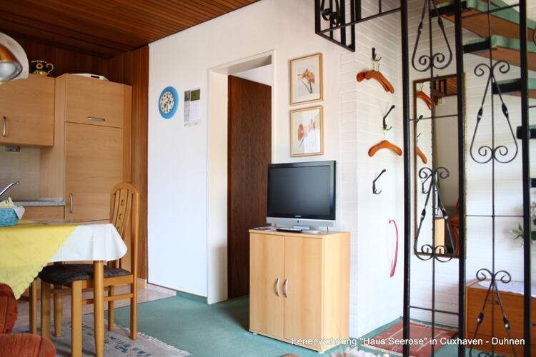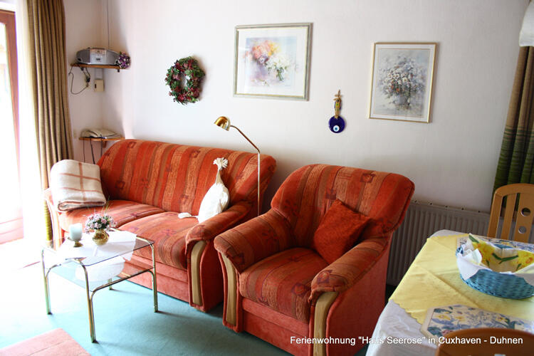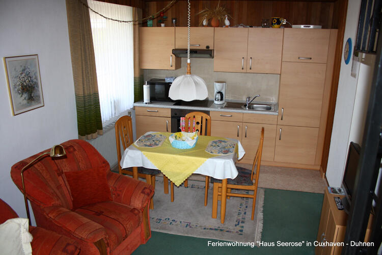 Die komfortabel eingerichtete Ferienwohnung liegt im Ortsteil Duhnen des Nordseeheilbades Cuxhaven. Sie befindet sich, mit separatem Eingang, im südlichen Teil des Wohnhauses der Eigentümer. Die Ferienwohnung liegt im ruhigen, südlichen Teil Duhnens direkt an der Peripherie. Zum 12km langen Sandstrand, zum Aqua-Park "AHOI" (ehem. Meerwasserbrandungsbad Duhnen) mit Saunalandschaft und den übrigen Kureinrichtungen, sowie in den Ortskern mit Bushaltestelle und den verschiedenen Einkaufsmöglichkeiten sind es knappe 5 bis 10 Minuten Fußweg.