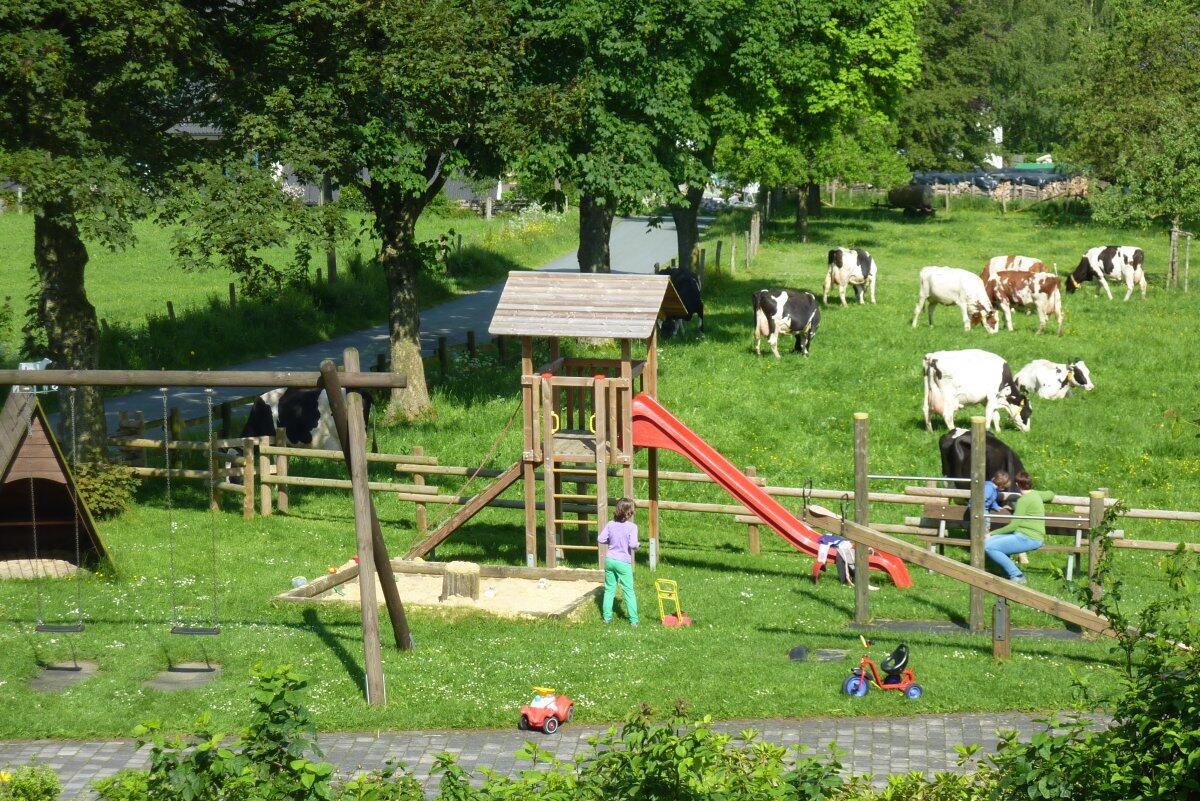 Der Ferienbauernhof Gördes In malerischer Lage im Bundesgolddorf Oberhenneborn, abseits vom Verkehr, erwartet Sie unser Bauern- und Ferienhof - Ein Paradies für Familien mit Kindern, für Natur- und Wanderfreunde. Wer die Landwirtschaft live erleben möchte, der kann dem Bauern helfen, die Kühe zum Melken und Füttern abends von der Weide in den Stall zu holen. Außerdem sind noch Jungrinder und Kälber sowie die Ponys Ronja und Rocko, die Ziegen Lotta und Emma, die Kaninchen, die Hühner und die Katzen zu versorgen. Wer will, darf zuschauen oder mitmachen - jeder wie er möchte.